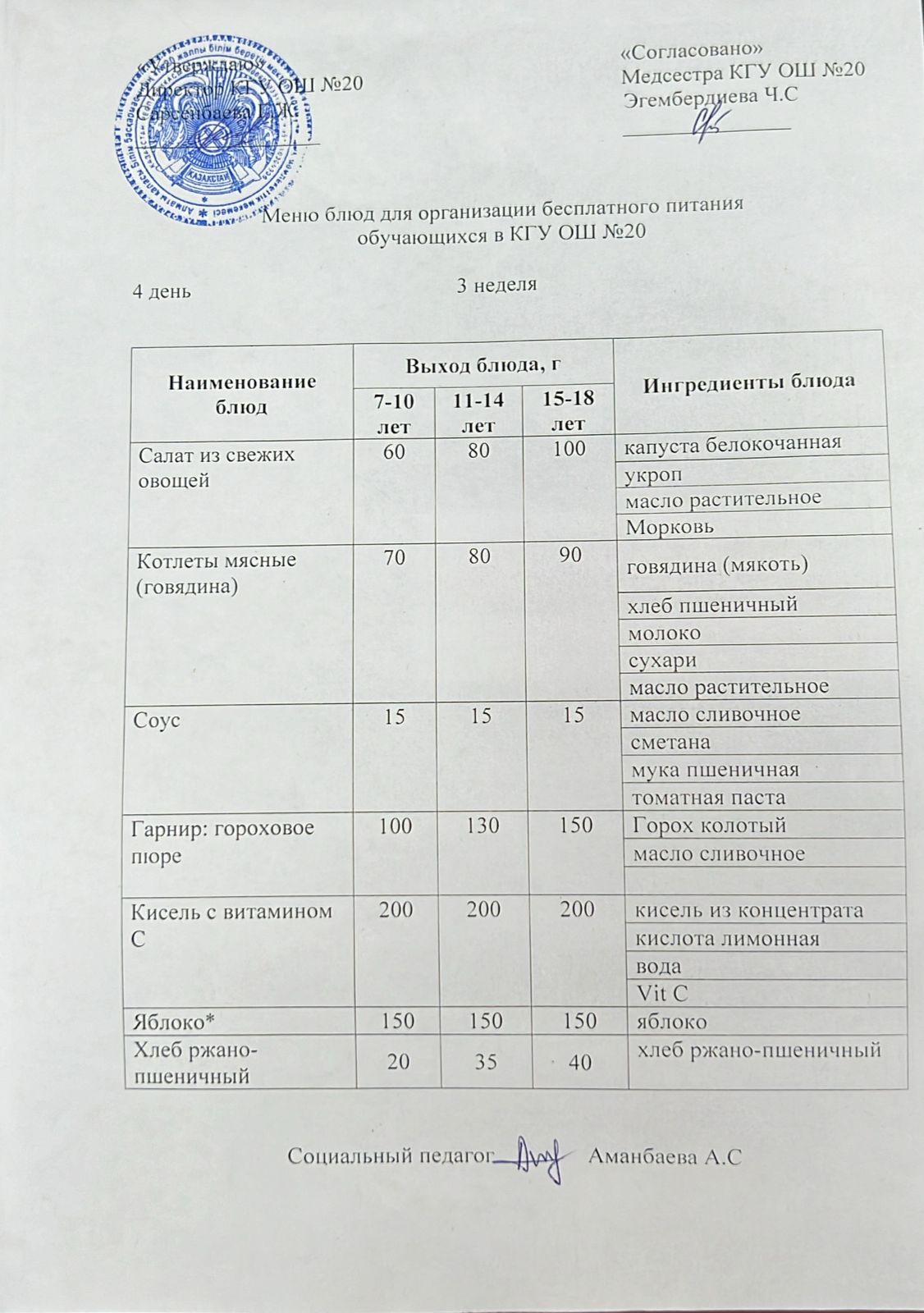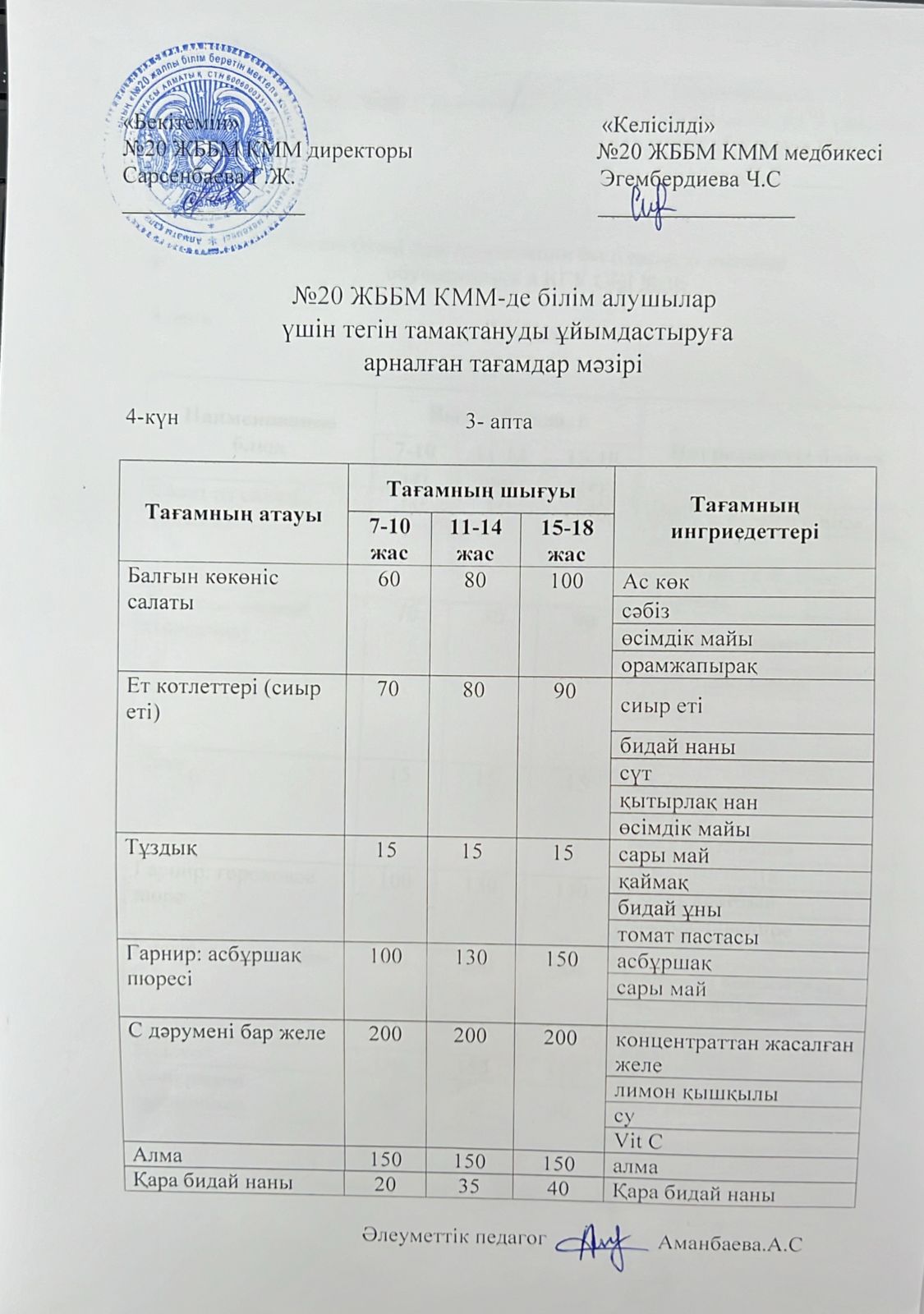2023-2024 оқу жылы 1-4 сынып және СУСН 5-11 сыныптар мәзірі. Меню 1-4 класс, СУСН 5-11 класс 2023-2024 учебный год