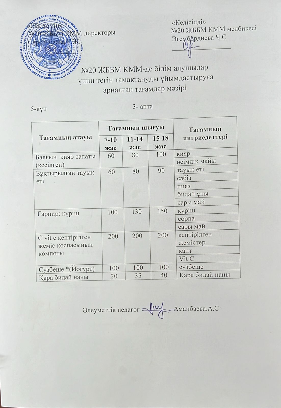 2023-2024 оқу жылы 1-4 сынып және СУСН 5-11 сыныптар мәзірі. Меню 1-4 класс, СУСН 5-11 класс 2023-2024 учебный год