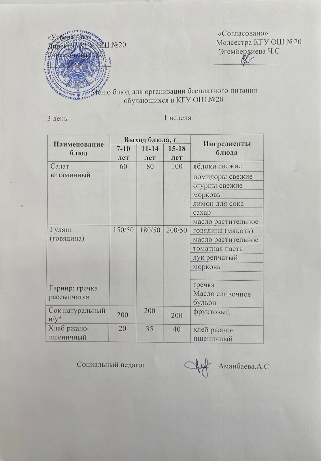 2023-2024 оқу жылы 1-4 сынып және СУСН 5-11 сыныптар мәзірі. Меню 1-4 класс, СУСН 5-11 класс 2023-2024 учебный год