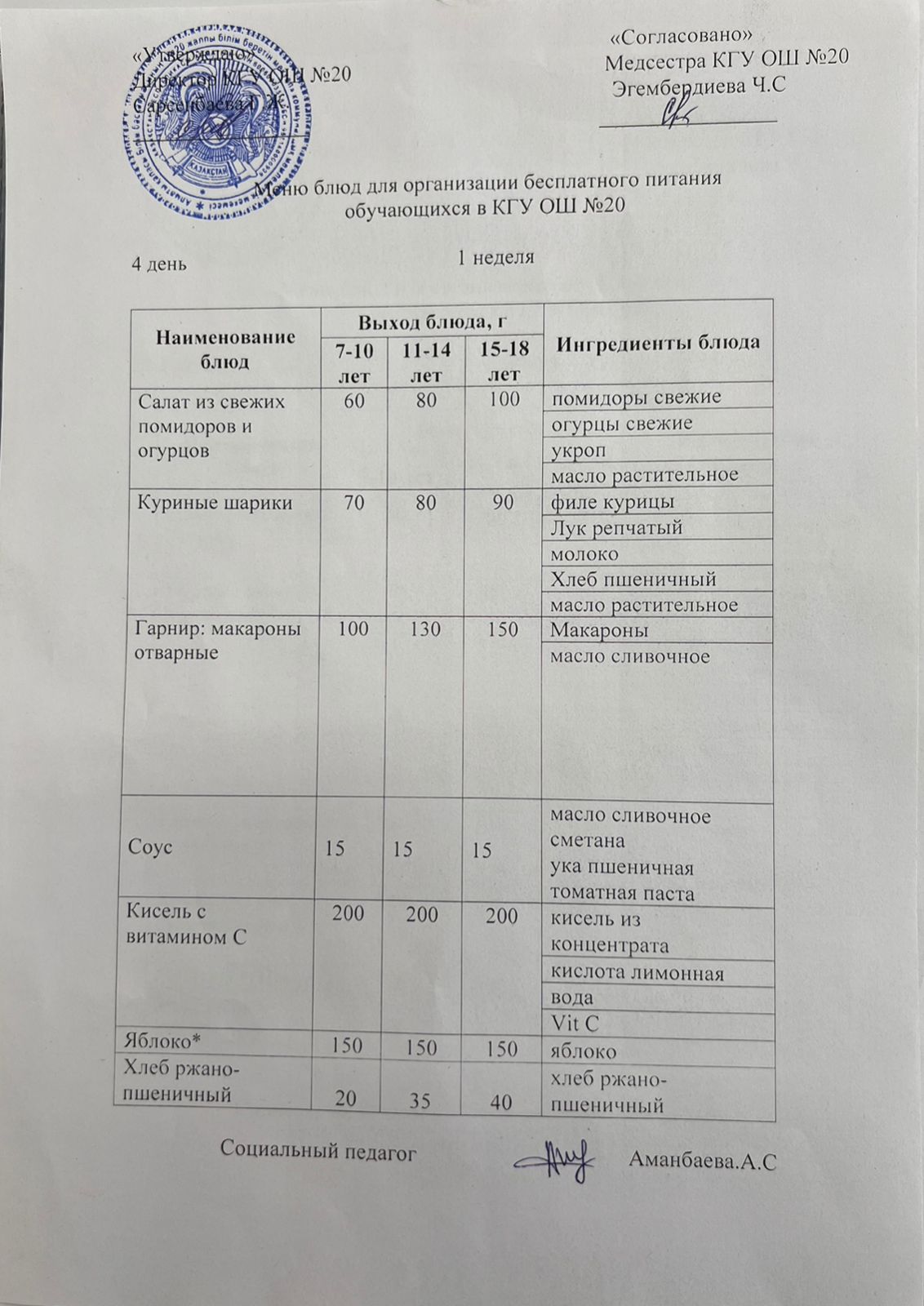 2023-2024 оқу жылы 1-4 сынып және СУСН 5-11 сыныптар мәзірі. Меню 1-4 класс, СУСН 5-11 класс 2023-2024 учебный год