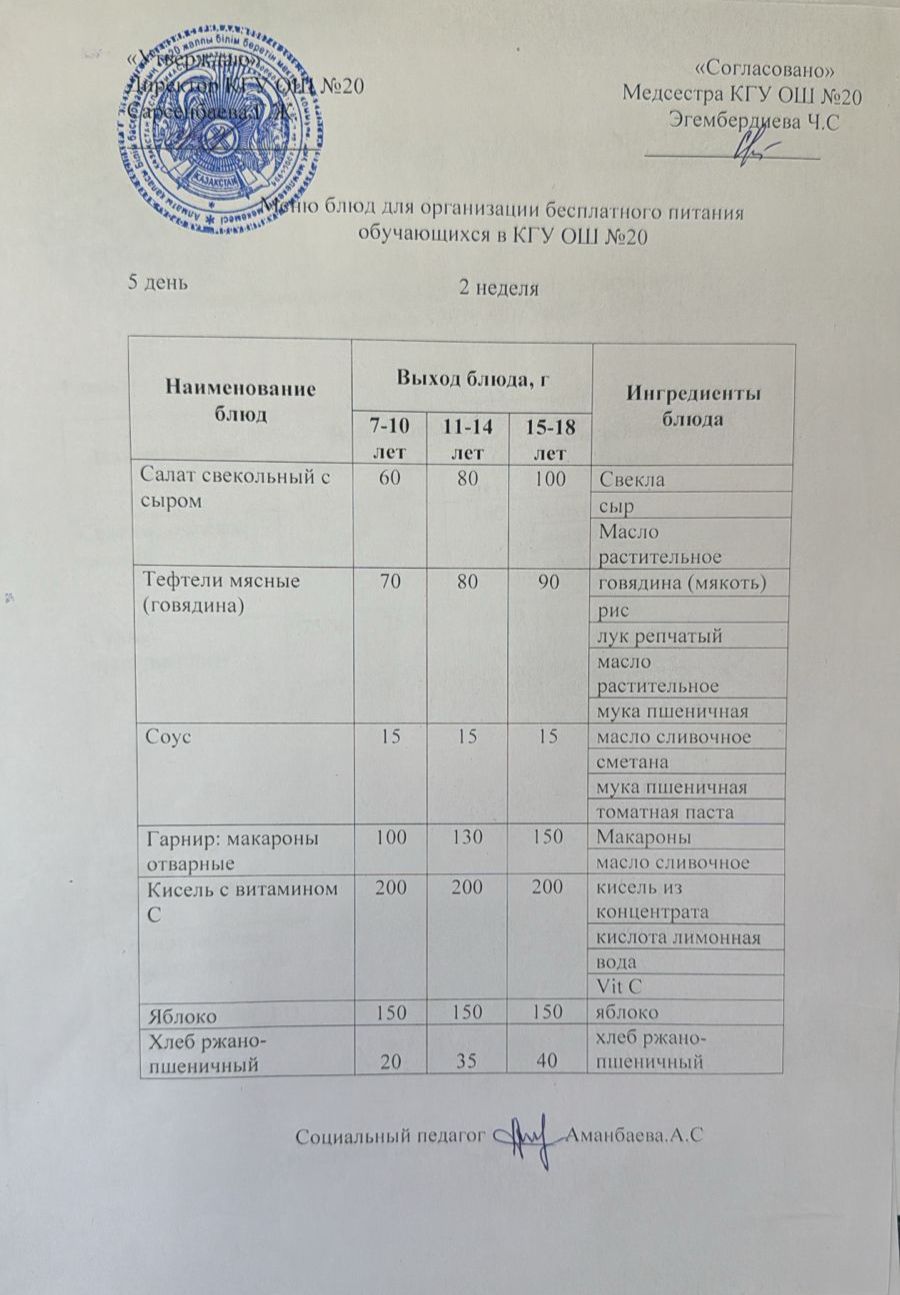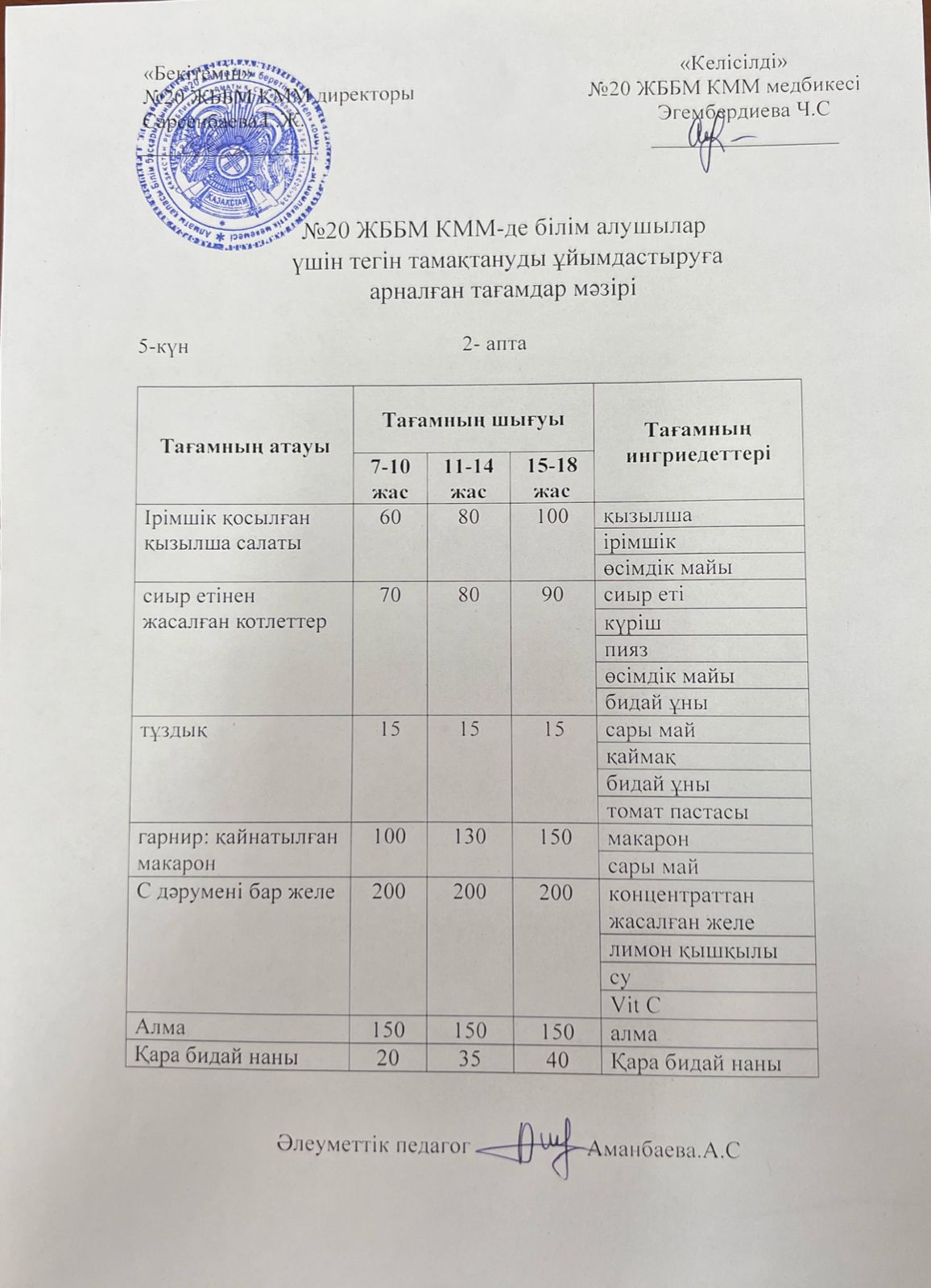2023-2024 оқу жылы 1-4 сынып және СУСН 5-11 сыныптар мәзірі. Меню 1-4 класс, СУСН 5-11 класс 2023-2024 учебный год