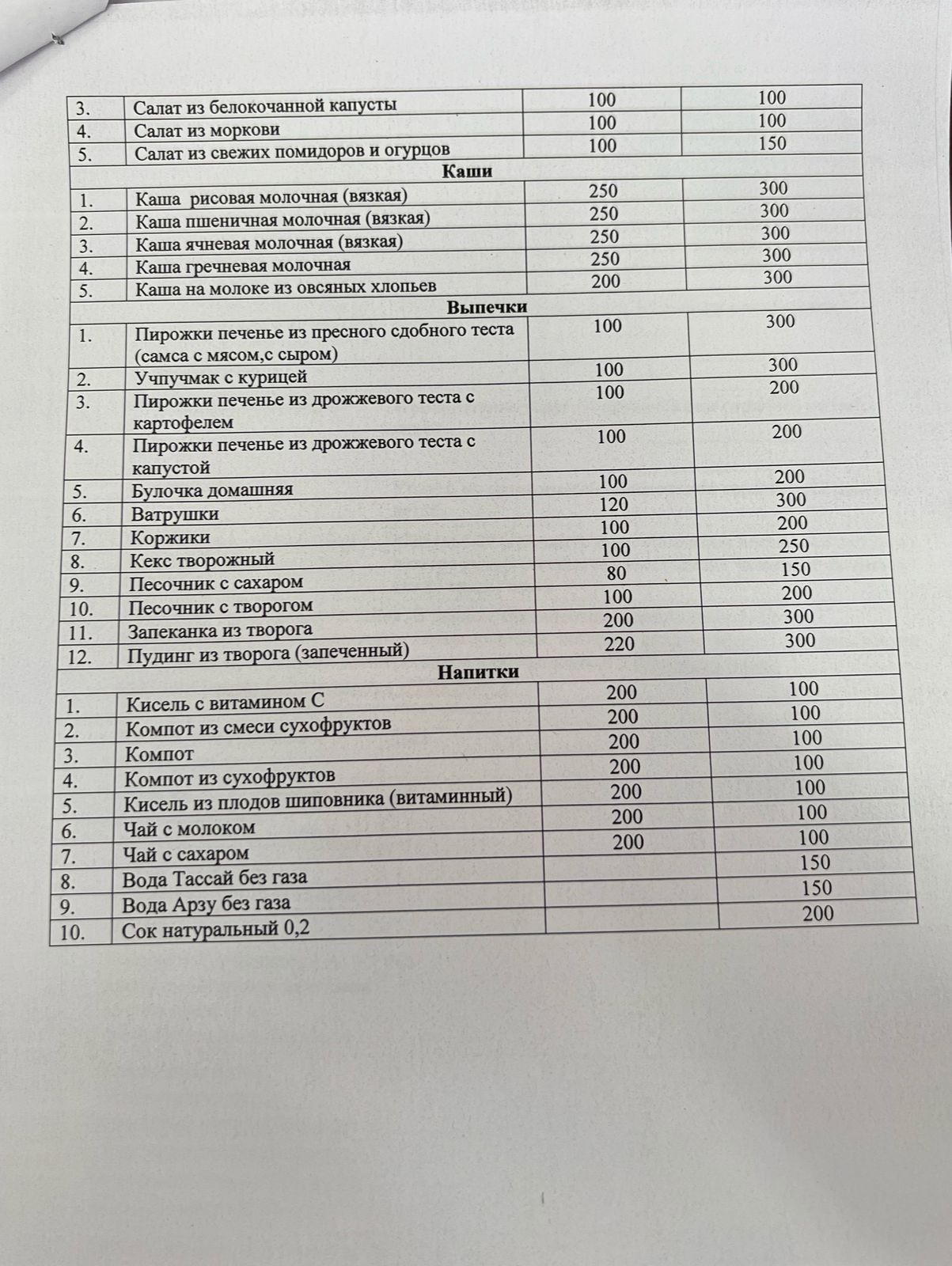 Ассортиментный перечень выпускаемый продукции в столовый