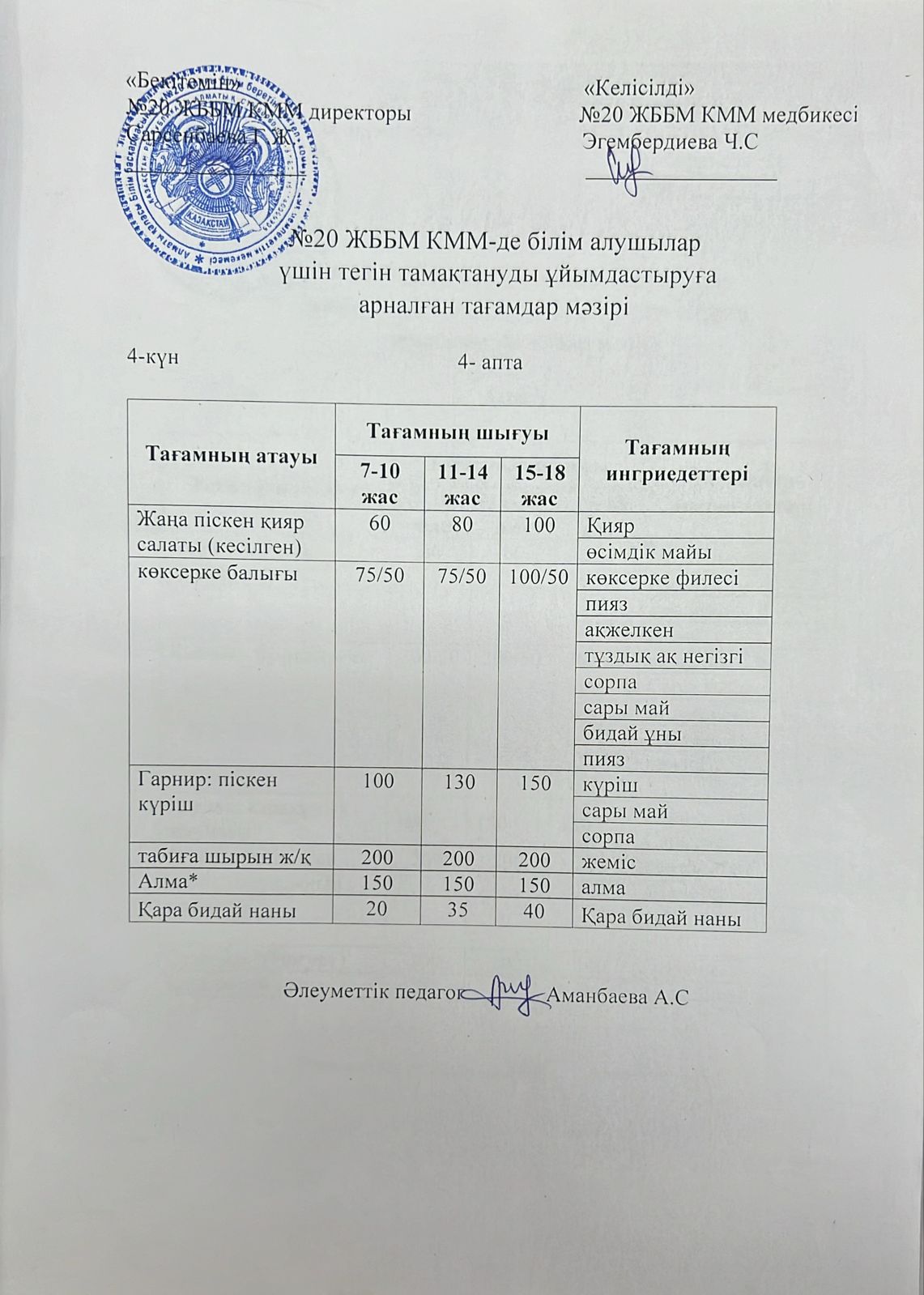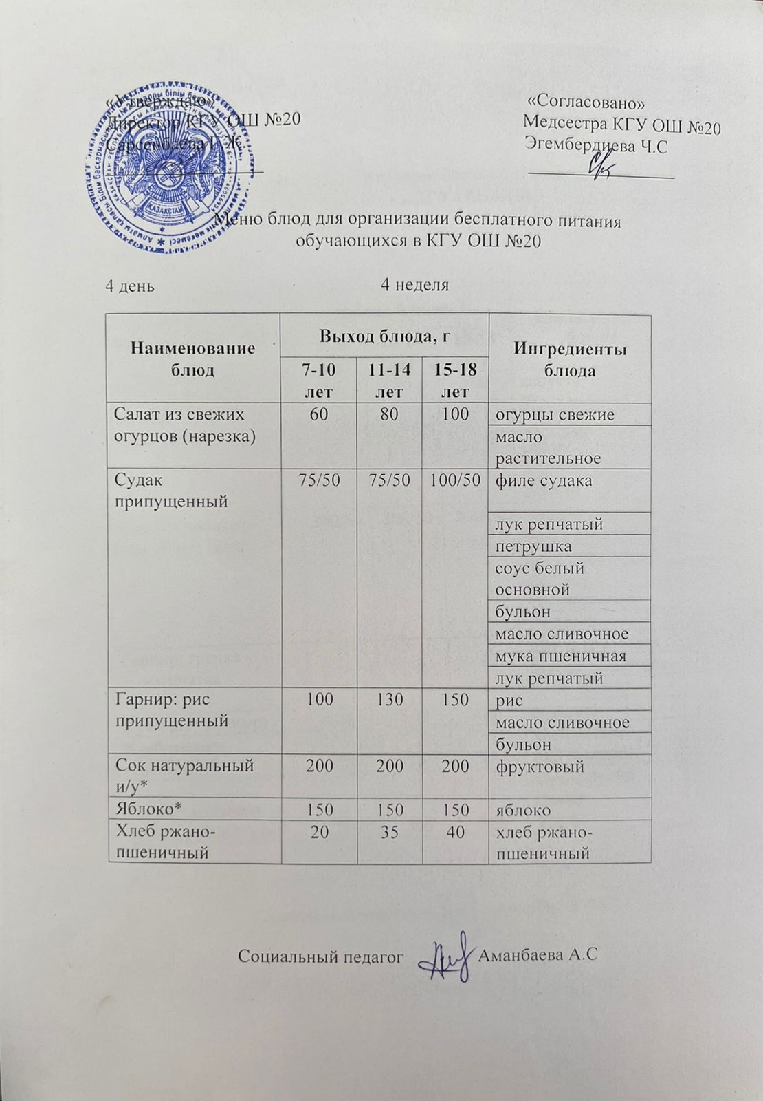 2023-2024 оқу жылы 1-4 сынып және СУСН 5-11 сыныптар мәзірі. Меню 1-4 класс, СУСН 5-11 класс 2023-2024 учебный год