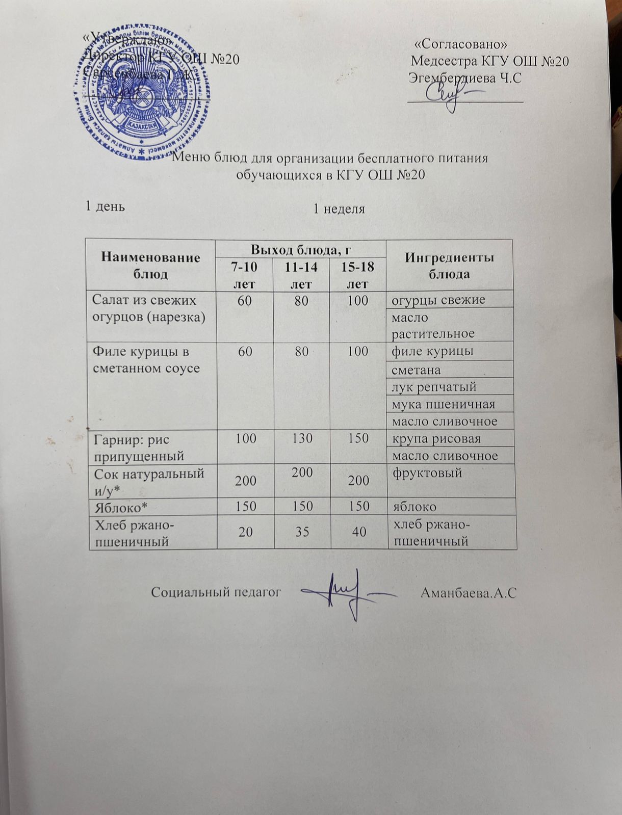 2023-2024 оқу жылы 1-4 сынып және СУСН 5-11 сыныптар мәзірі. Меню 1-4 класс, СУСН 5-11 класс 2023-2024 учебный год