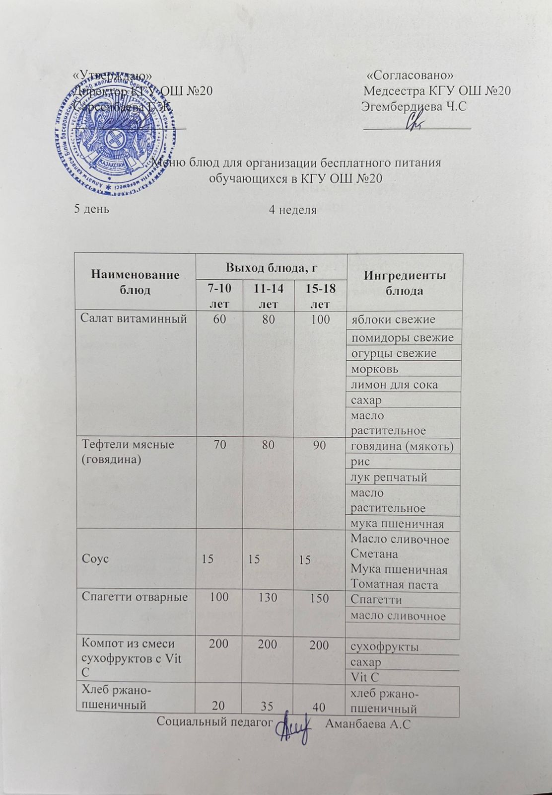 2023-2024 оқу жылы 1-4 сынып және СУСН 5-11 сыныптар мәзірі. Меню 1-4 класс, СУСН 5-11 класс 2023-2024 учебный год
