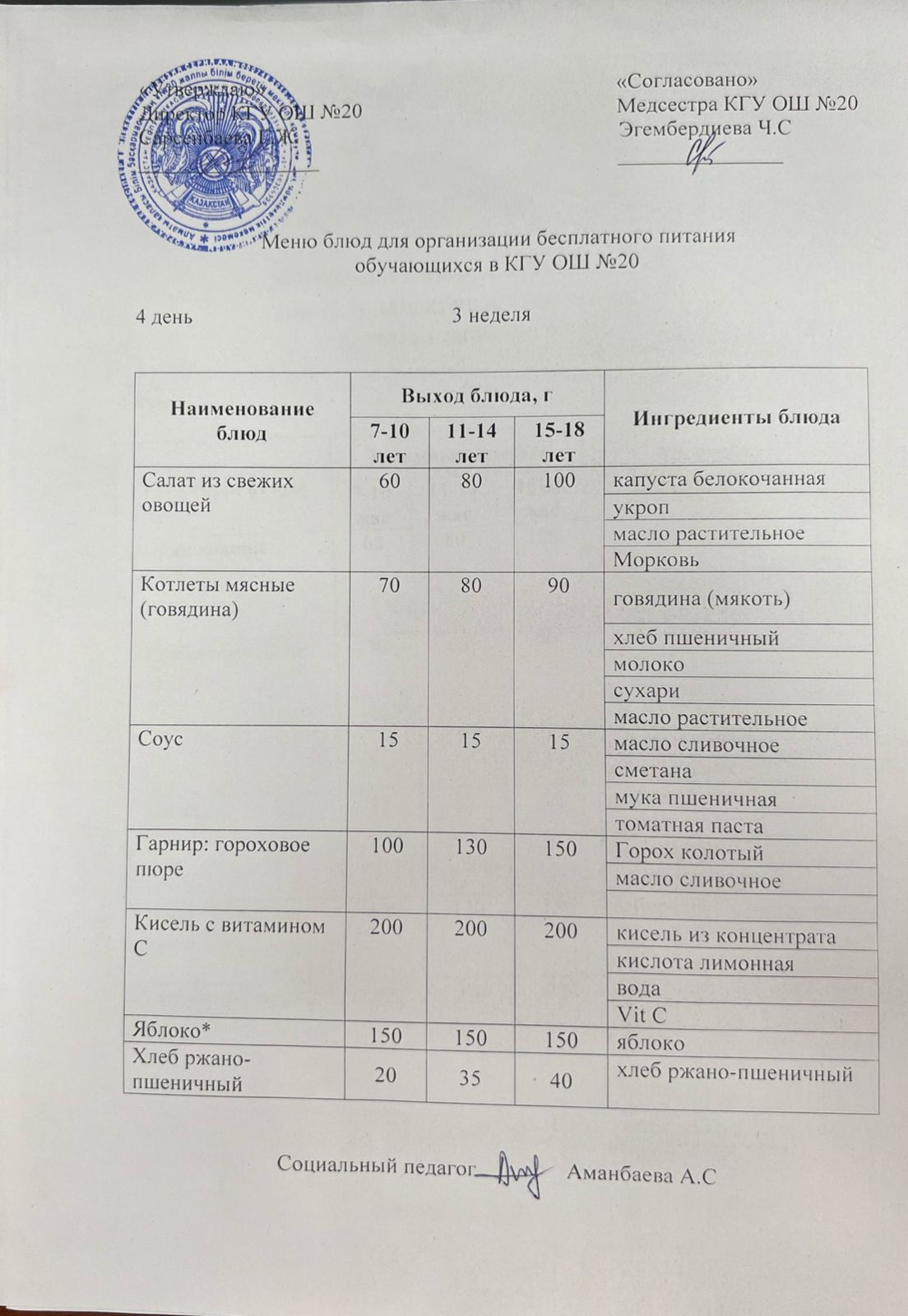 2023-2024 оқу жылы 1-4 сынып және СУСН 5-11 сыныптар мәзірі. Меню 1-4 класс, СУСН 5-11 класс 2023-2024 учебный год