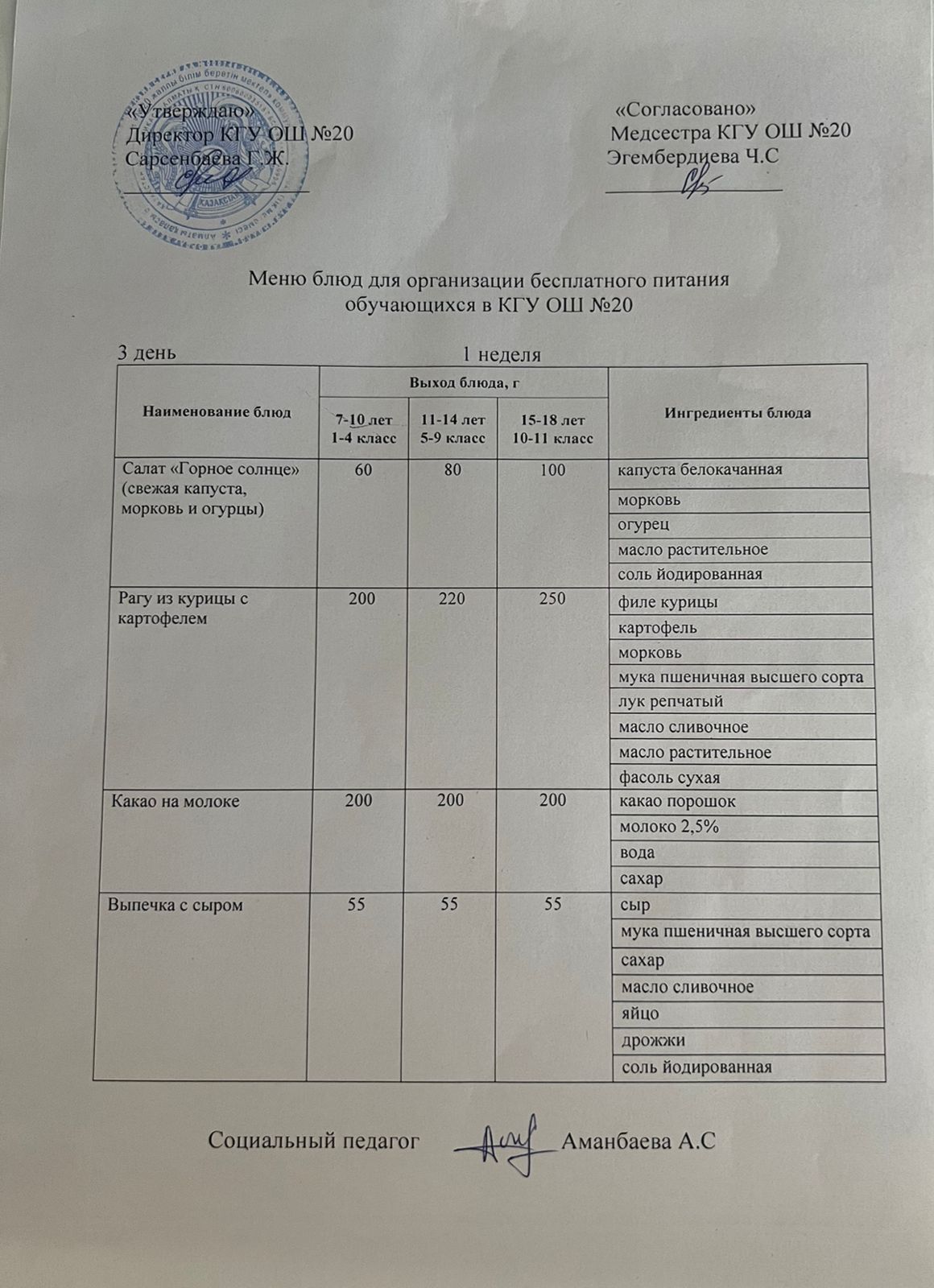 2023-2024 оқу жылы 1-4 сынып және СУСН 5-11 сыныптар мәзірі. Меню 1-4 класс, СУСН 5-11 класс 2023-2024 учебный год