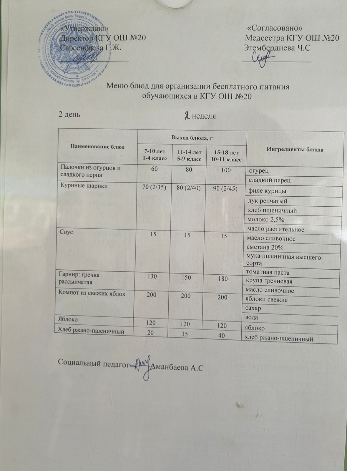 2023-2024 оқу жылы 1-4 сынып және СУСН 5-11 сыныптар мәзірі. Меню 1-4 класс, СУСН 5-11 класс 2023-2024 учебный год