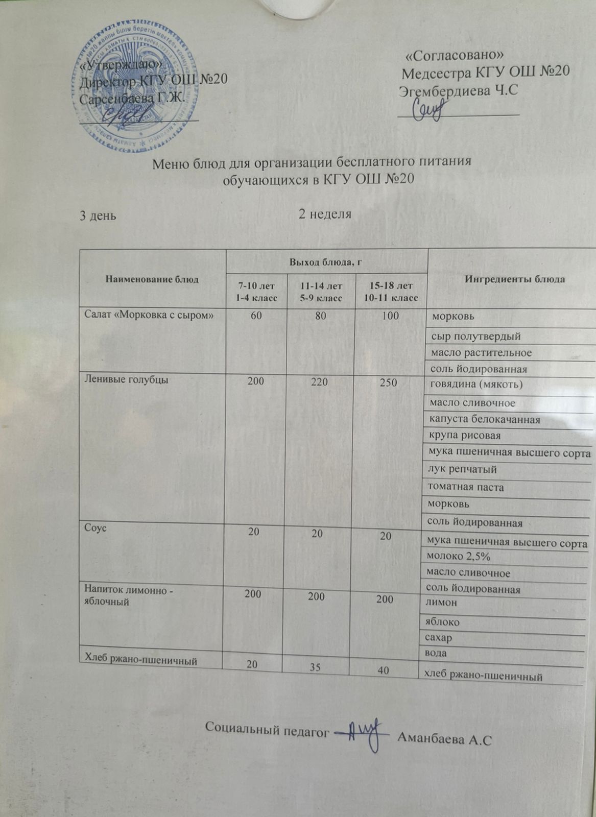2023-2024 оқу жылы 1-4 сынып және СУСН 5-11 сыныптар мәзірі. Меню 1-4 класс, СУСН 5-11 класс 2023-2024 учебный год