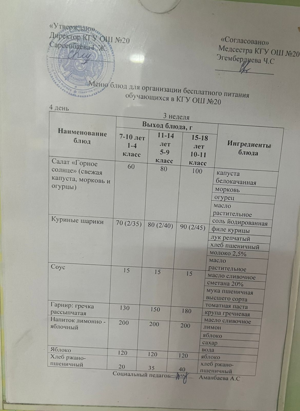 2023-2024 оқу жылы 1-4 сынып және СУСН 5-11 сыныптар мәзірі. Меню 1-4 класс, СУСН 5-11 класс 2023-2024 учебный год