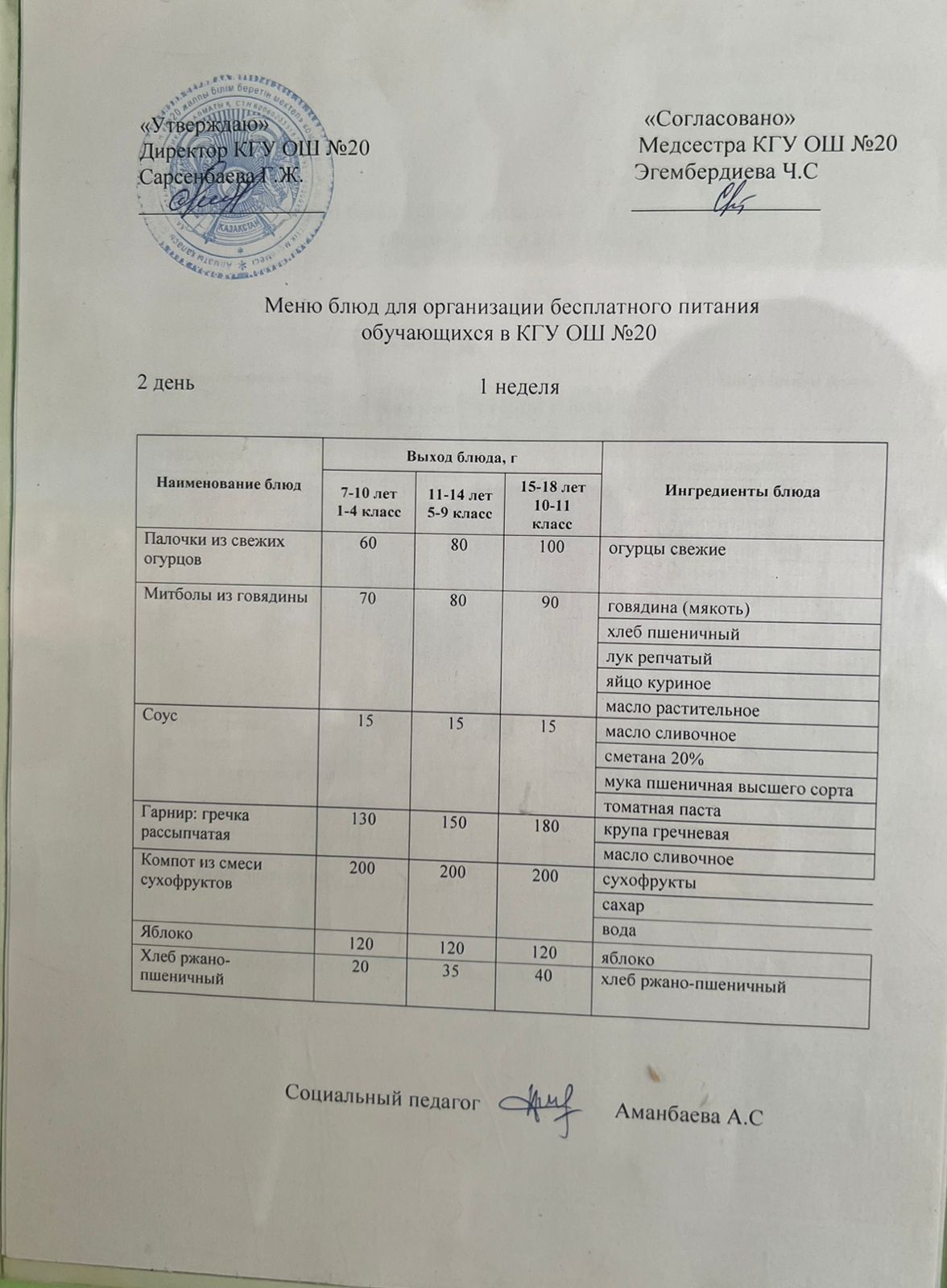 2023-2024 оқу жылы 1-4 сынып және СУСН 5-11 сыныптар мәзірі. Меню 1-4 класс, СУСН 5-11 класс 2023-2024 учебный год