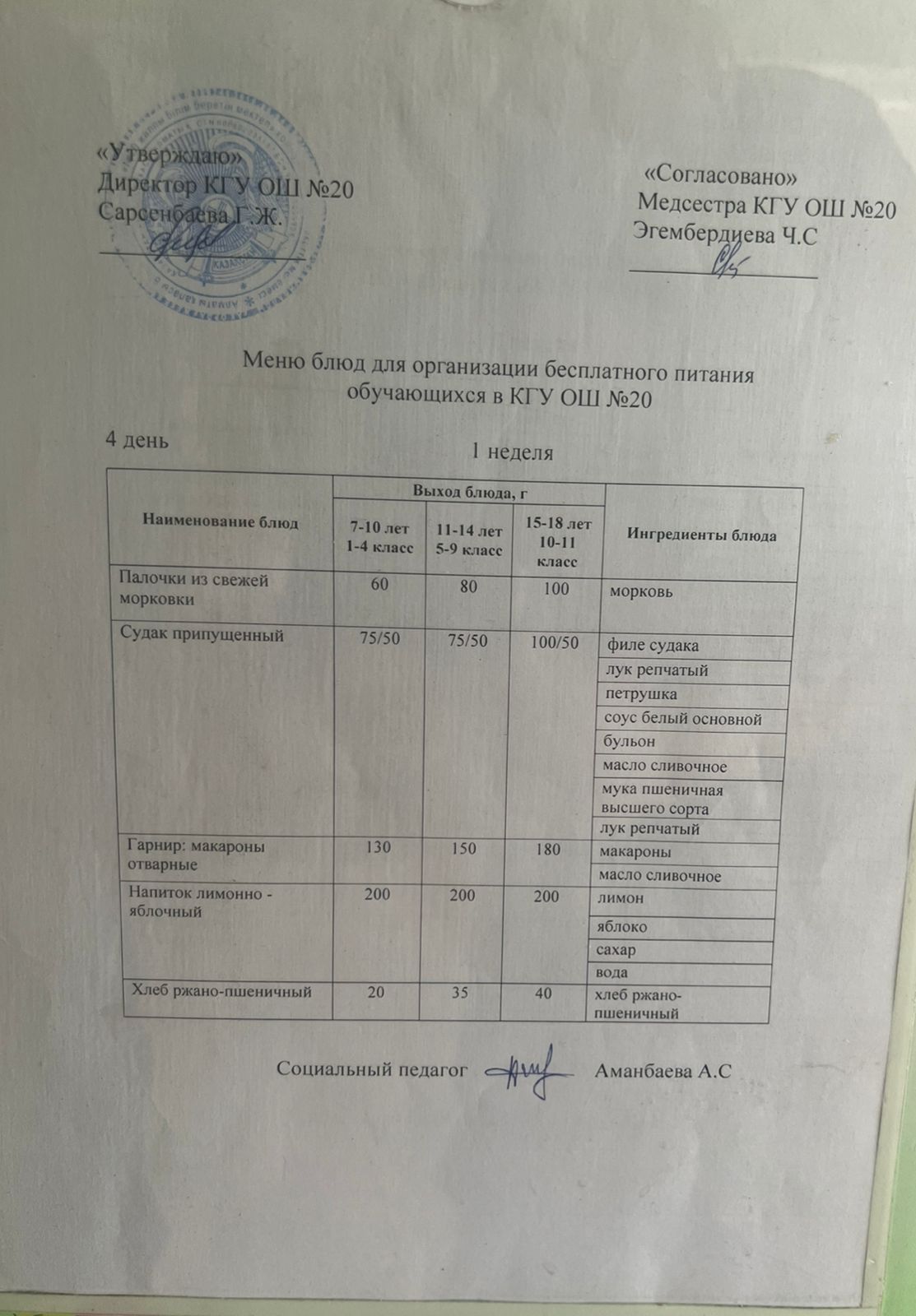 2023-2024 оқу жылы 1-4 сынып және СУСН 5-11 сыныптар мәзірі. Меню 1-4 класс, СУСН 5-11 класс 2023-2024 учебный год