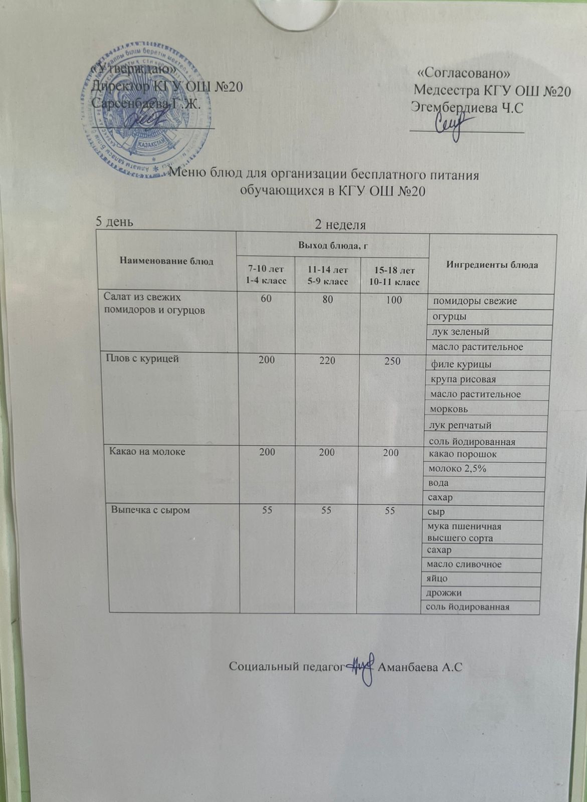 2023-2024 оқу жылы 1-4 сынып және СУСН 5-11 сыныптар мәзірі. Меню 1-4 класс, СУСН 5-11 класс 2023-2024 учебный год