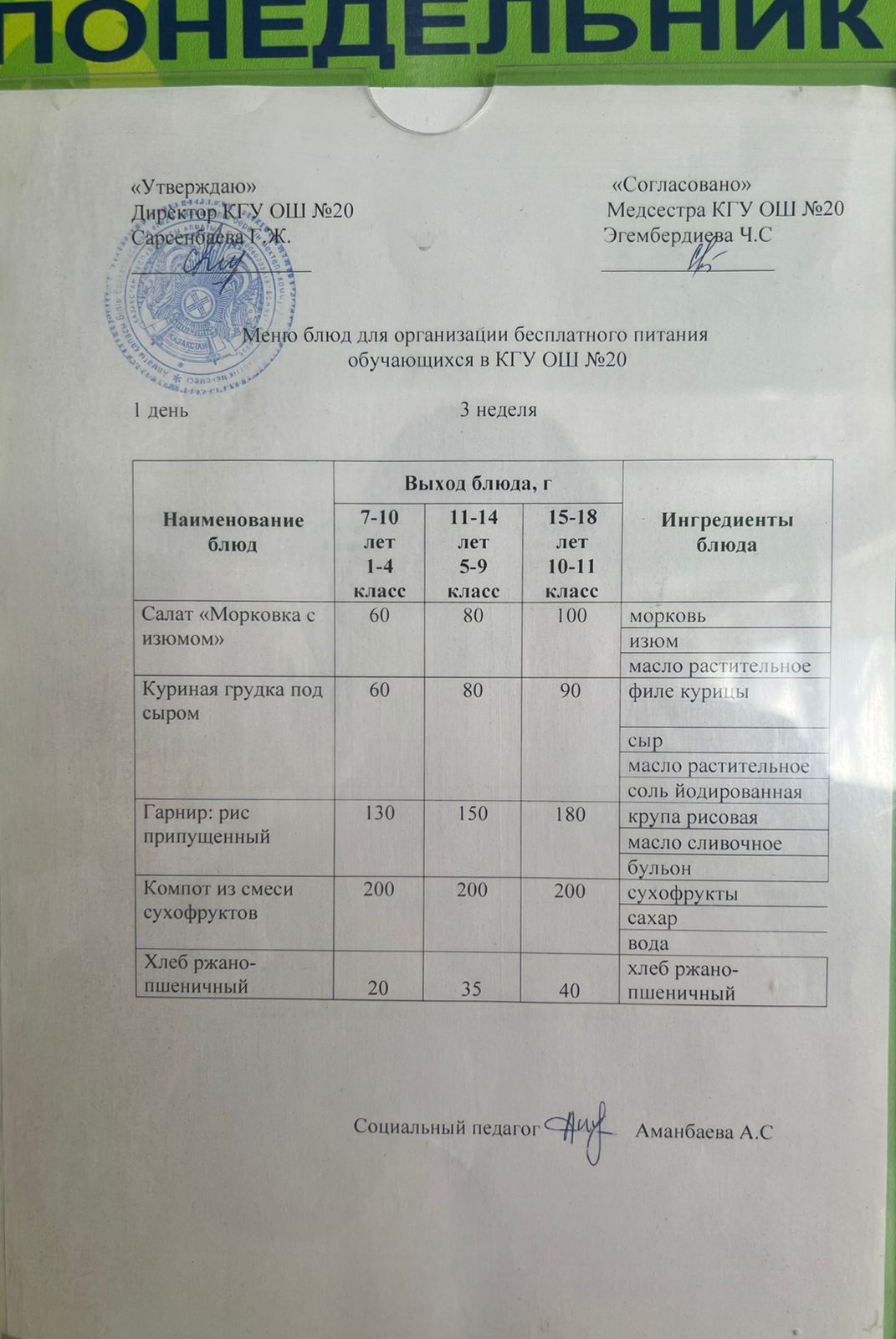 2023-2024 оқу жылы 1-4 сынып және СУСН 5-11 сыныптар мәзірі. Меню 1-4 класс, СУСН 5-11 класс 2023-2024 учебный год