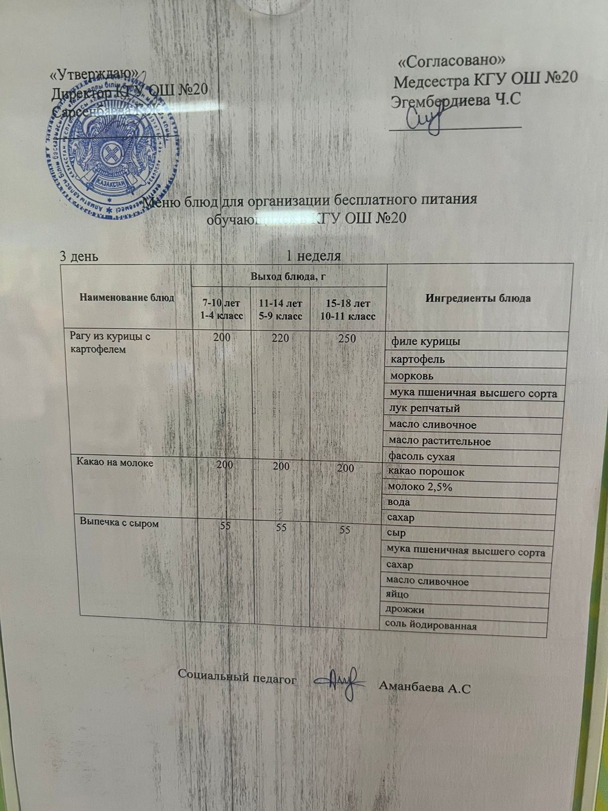 2023-2024 оқу жылы 1-4 сынып және СУСН 5-11 сыныптар мәзірі. Меню 1-4 класс, СУСН 5-11 класс 2023-2024 учебный год