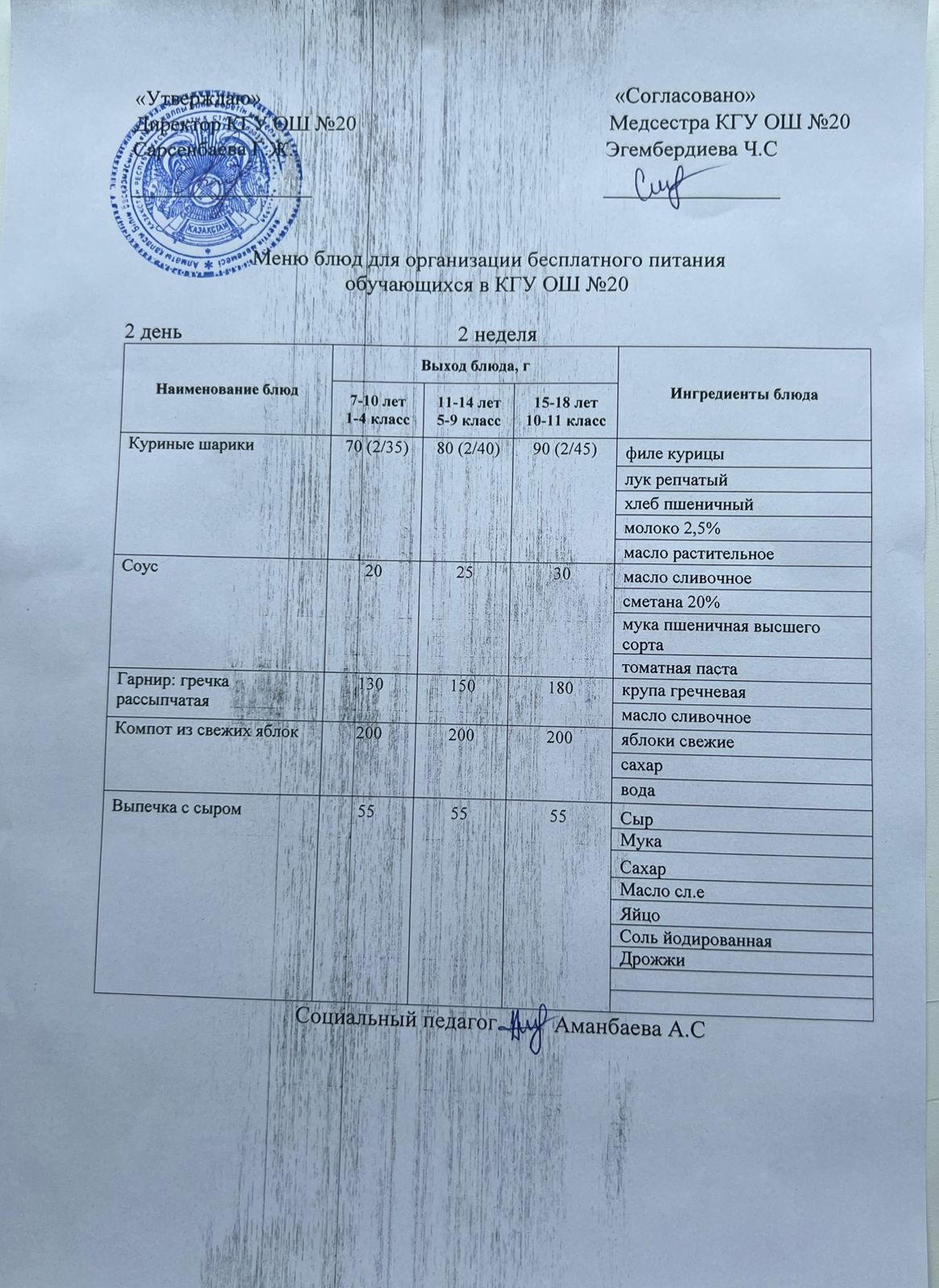 2023-2024 оқу жылы 1-4 сынып және СУСН 5-11 сыныптар мәзірі. Меню 1-4 класс, СУСН 5-11 класс 2023-2024 учебный год