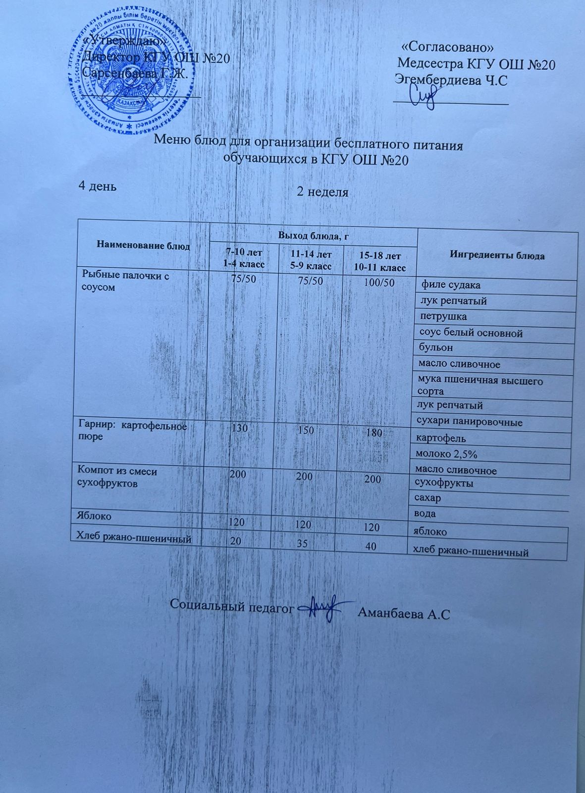 2023-2024 оқу жылы 1-4 сынып және СУСН 5-11 сыныптар мәзірі. Меню 1-4 класс, СУСН 5-11 класс 2023-2024 учебный год