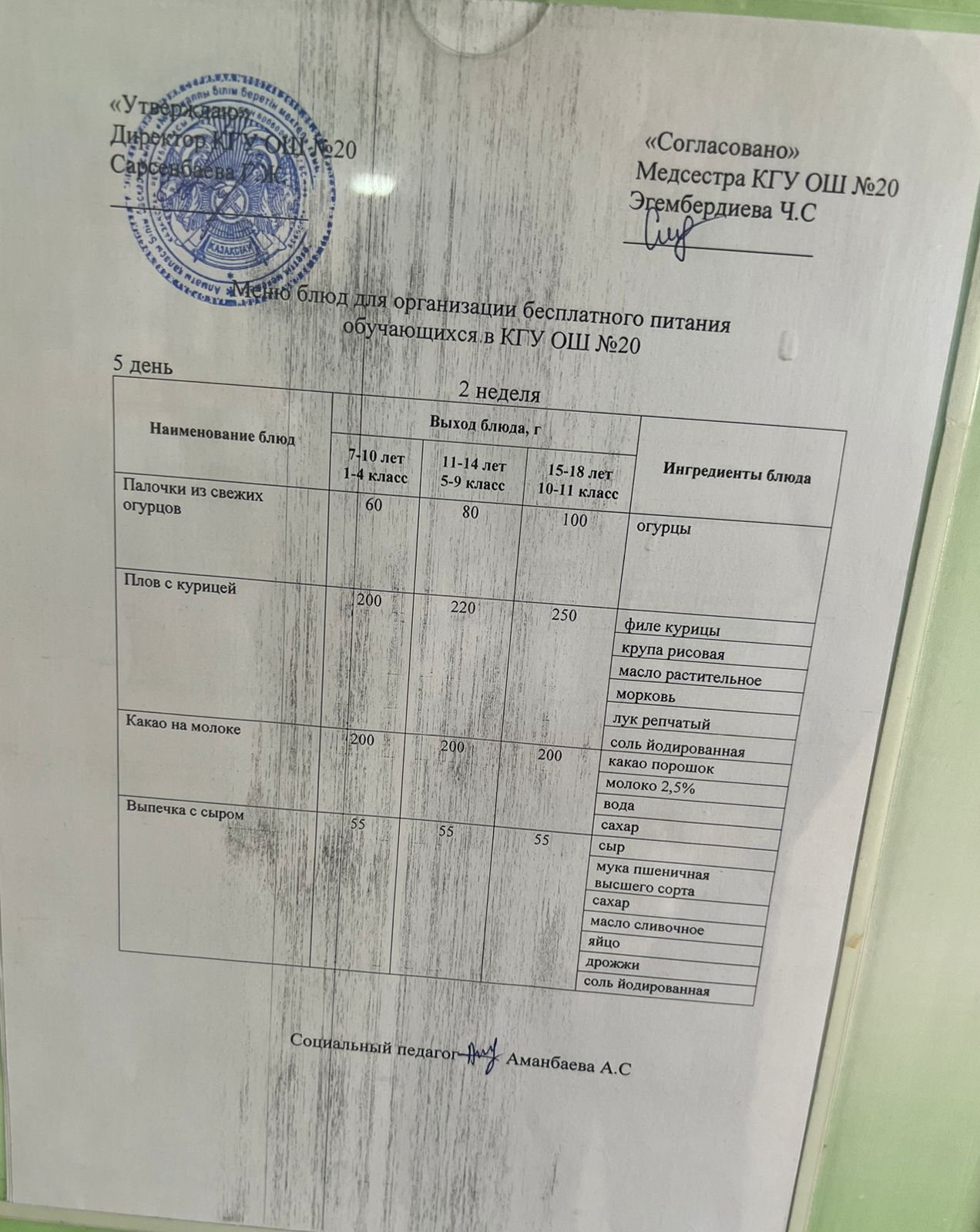 2023-2024 оқу жылы 1-4 сынып және СУСН 5-11 сыныптар мәзірі. Меню 1-4 класс, СУСН 5-11 класс 2023-2024 учебный год