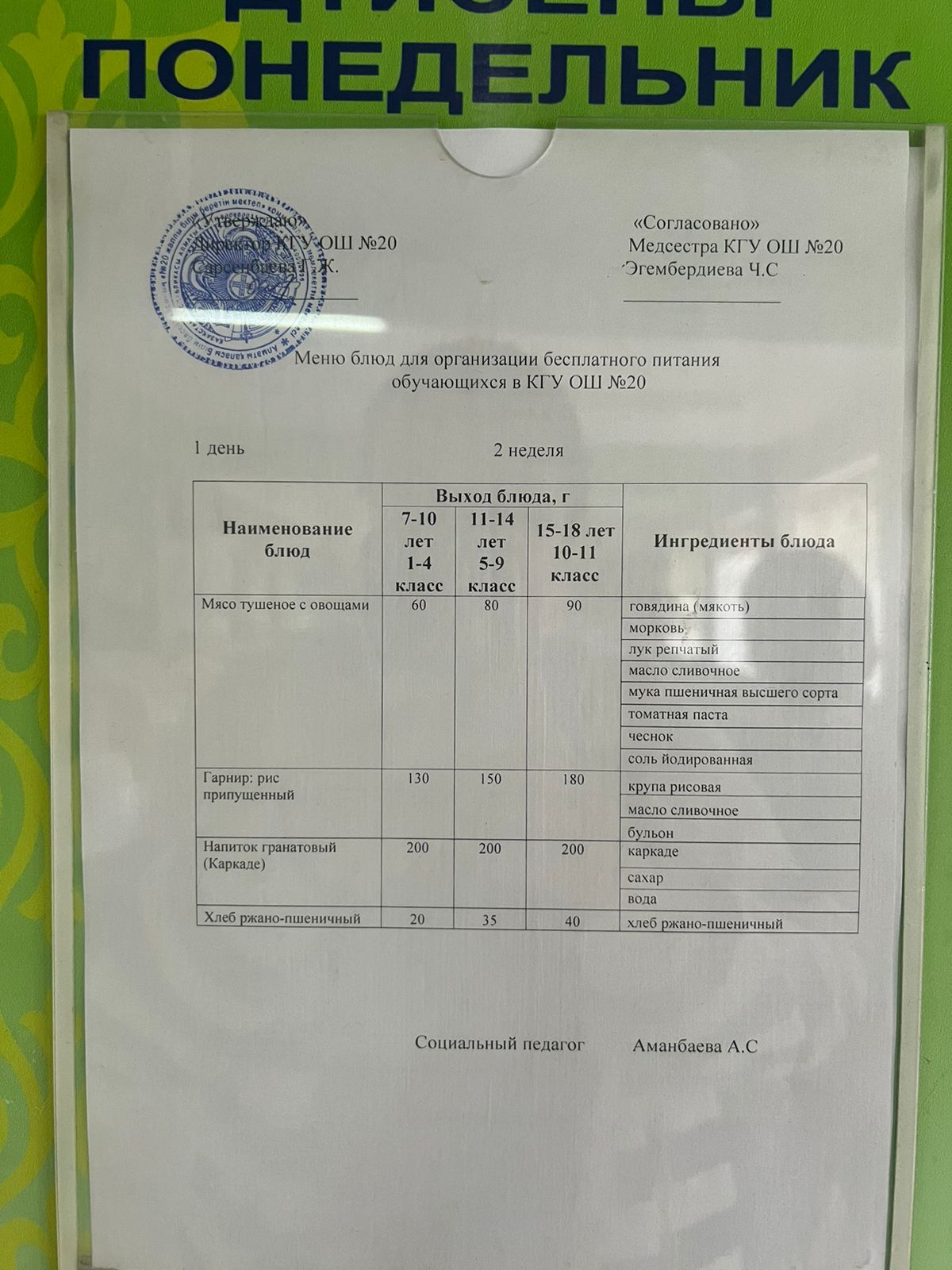 2023-2024 оқу жылы 1-4 сынып және СУСН 5-11 сыныптар мәзірі. Меню 1-4 класс, СУСН 5-11 класс 2023-2024 учебный год