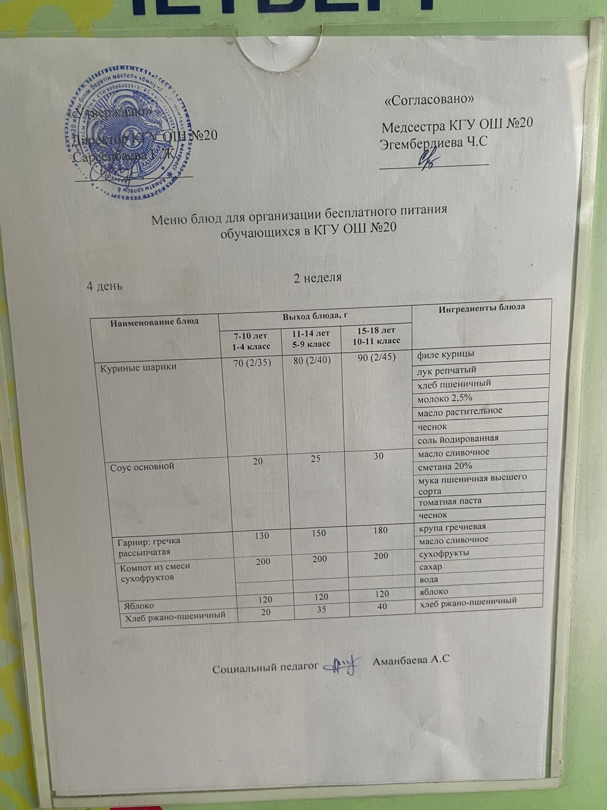 2023-2024 оқу жылы 1-4 сынып және СУСН 5-11 сыныптар мәзірі. Меню 1-4 класс, СУСН 5-11 класс 2023-2024 учебный год