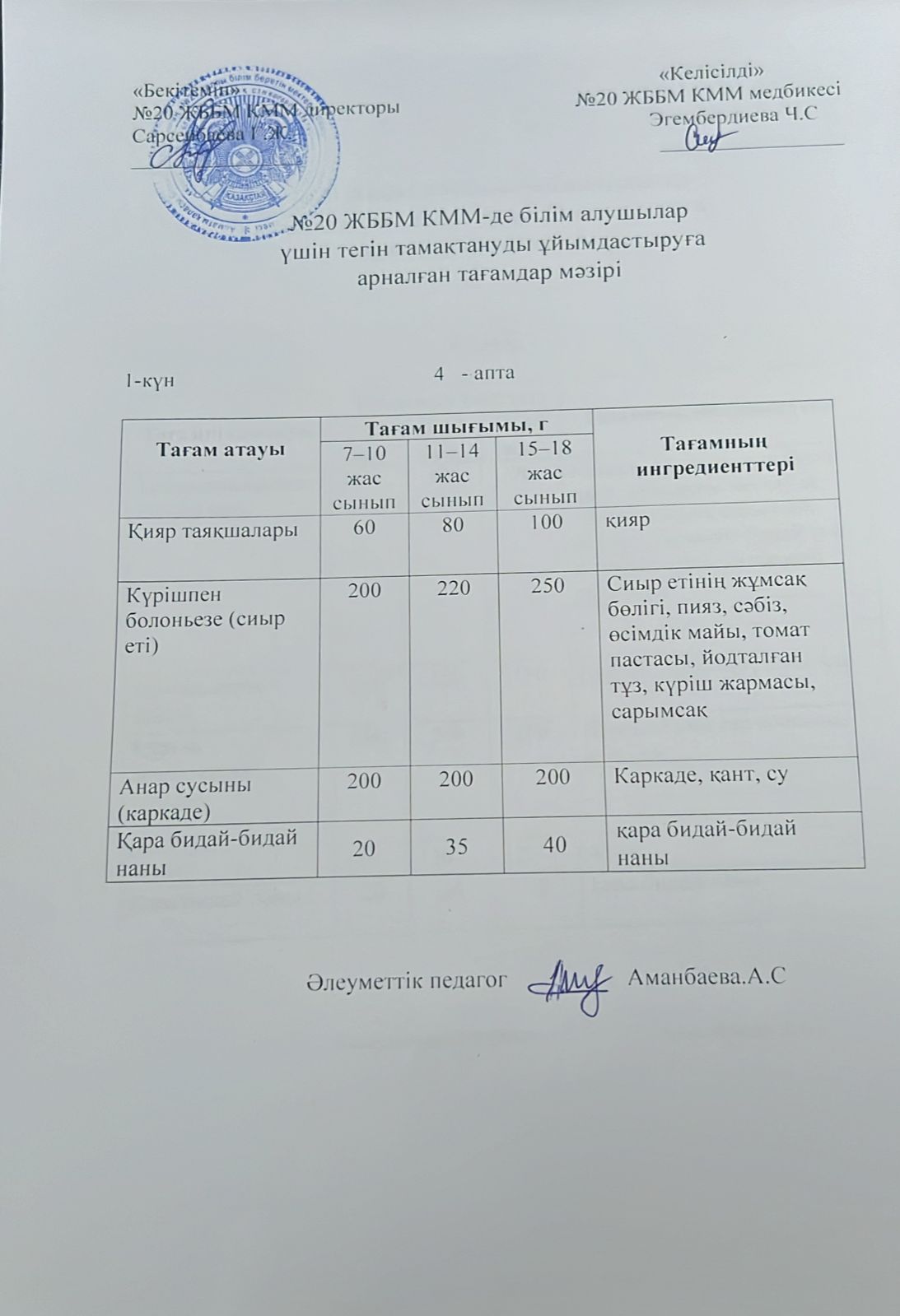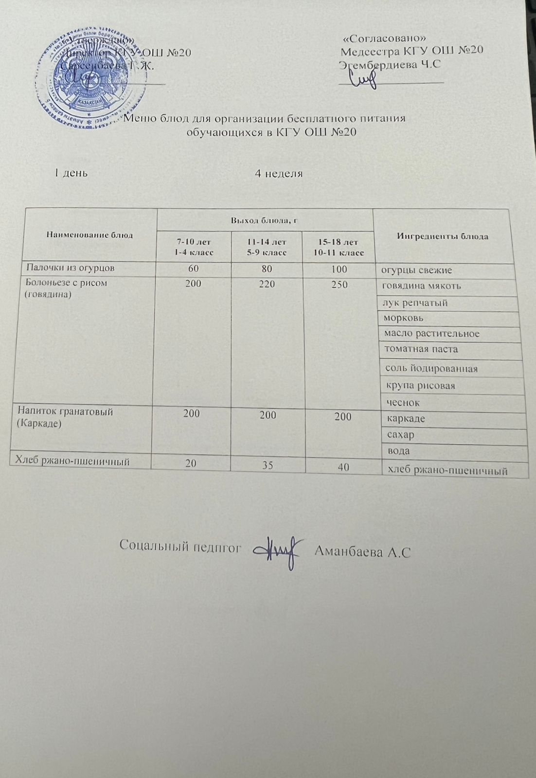 2023-2024 оқу жылы 1-4 сынып және СУСН 5-11 сыныптар мәзірі. Меню 1-4 класс, СУСН 5-11 класс 2023-2024 учебный год