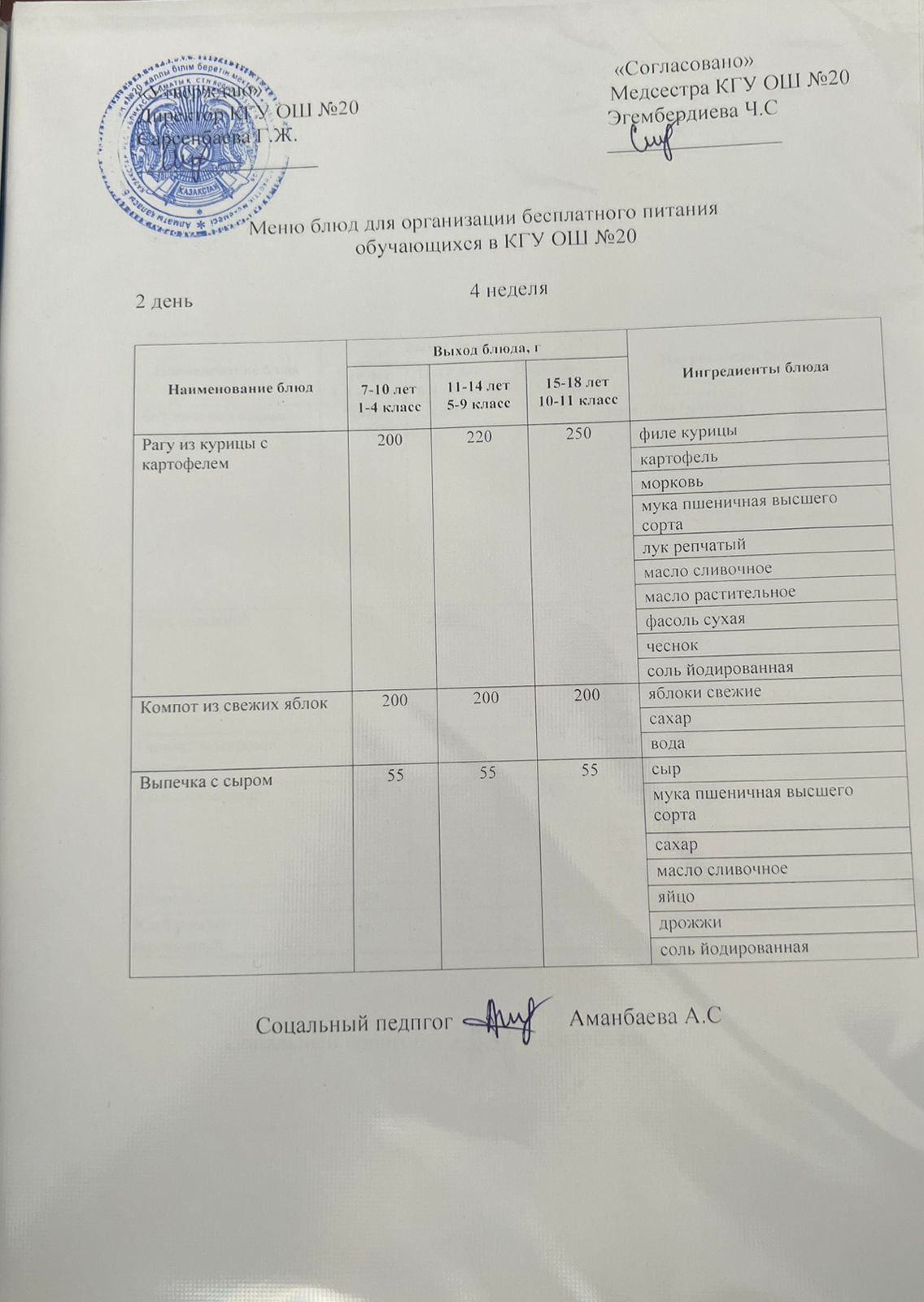 2023-2024 оқу жылы 1-4 сынып және СУСН 5-11 сыныптар мәзірі. Меню 1-4 класс, СУСН 5-11 класс 2023-2024 учебный год