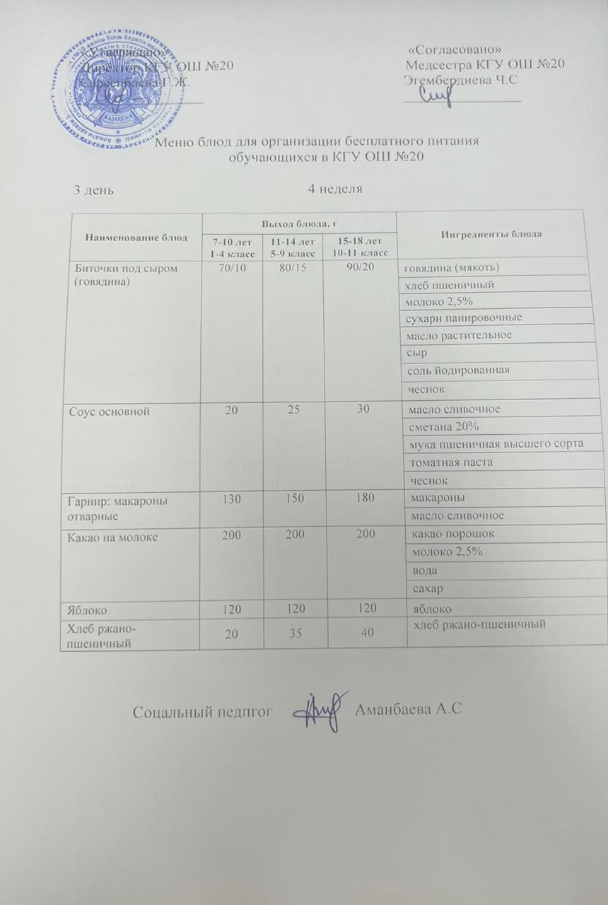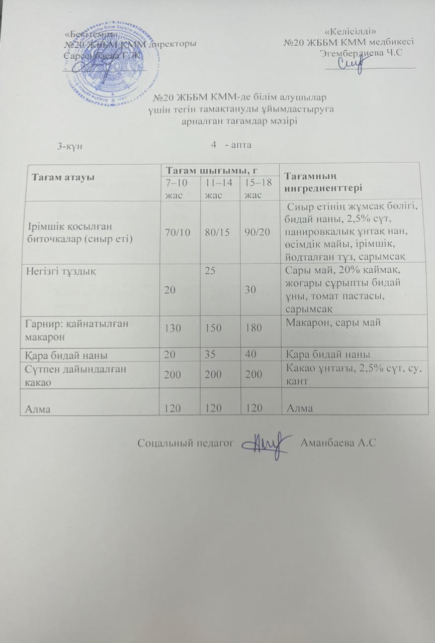 2023-2024 оқу жылы 1-4 сынып және СУСН 5-11 сыныптар мәзірі. Меню 1-4 класс, СУСН 5-11 класс 2023-2024 учебный год