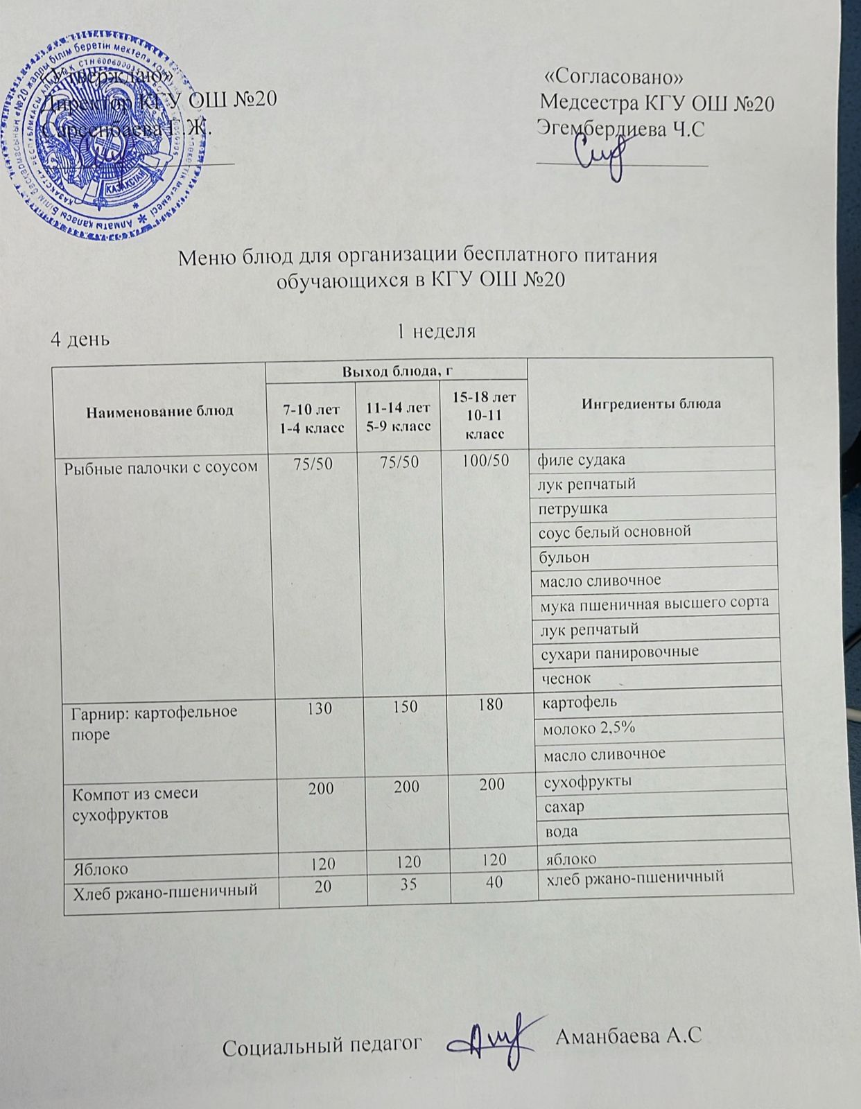 2023-2024 оқу жылы 1-4 сынып және СУСН 5-11 сыныптар мәзірі. Меню 1-4 класс, СУСН 5-11 класс 2023-2024 учебный год