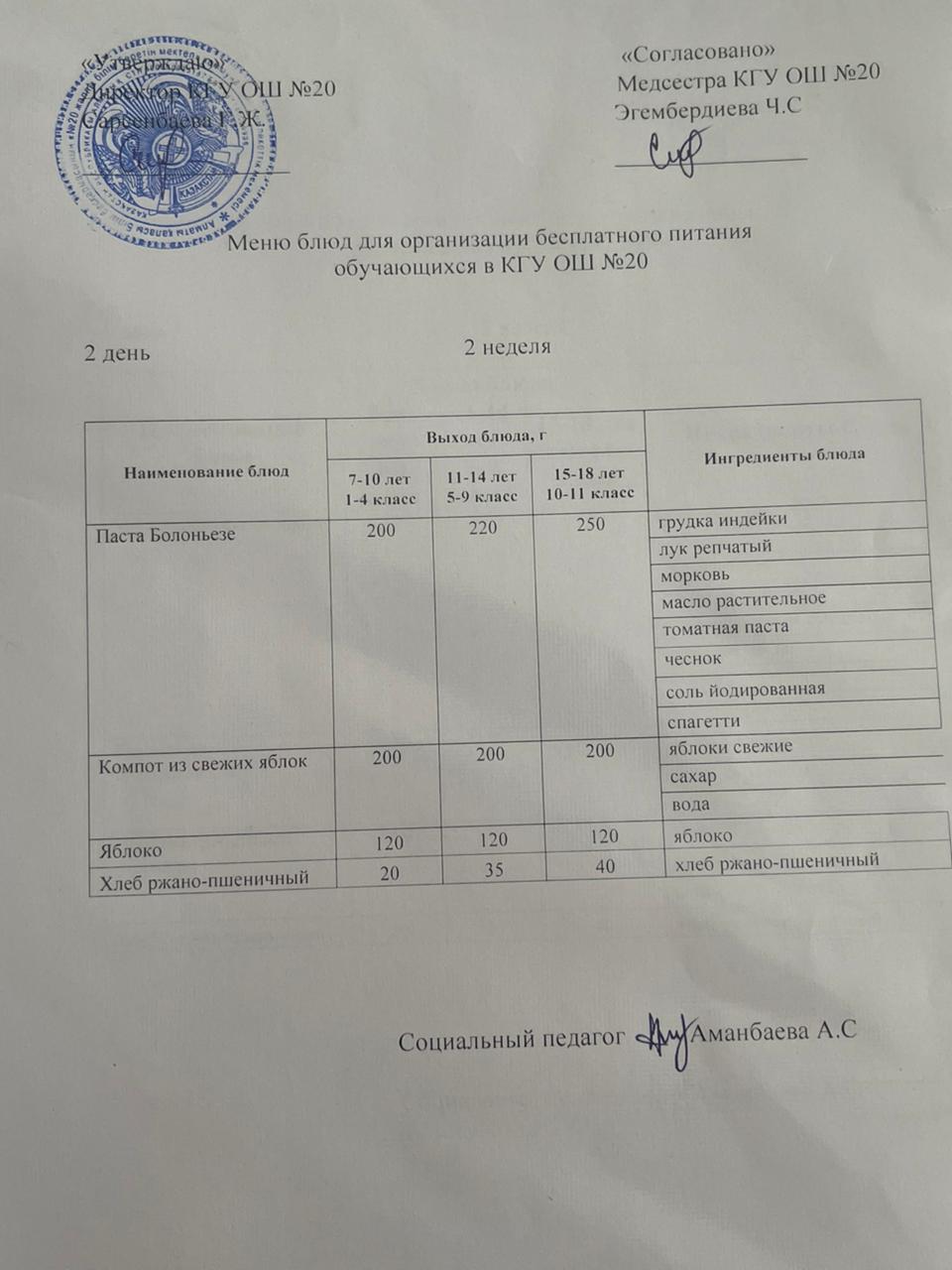 2023-2024 оқу жылы 1-4 сынып және СУСН 5-11 сыныптар мәзірі. Меню 1-4 класс, СУСН 5-11 класс 2023-2024 учебный год