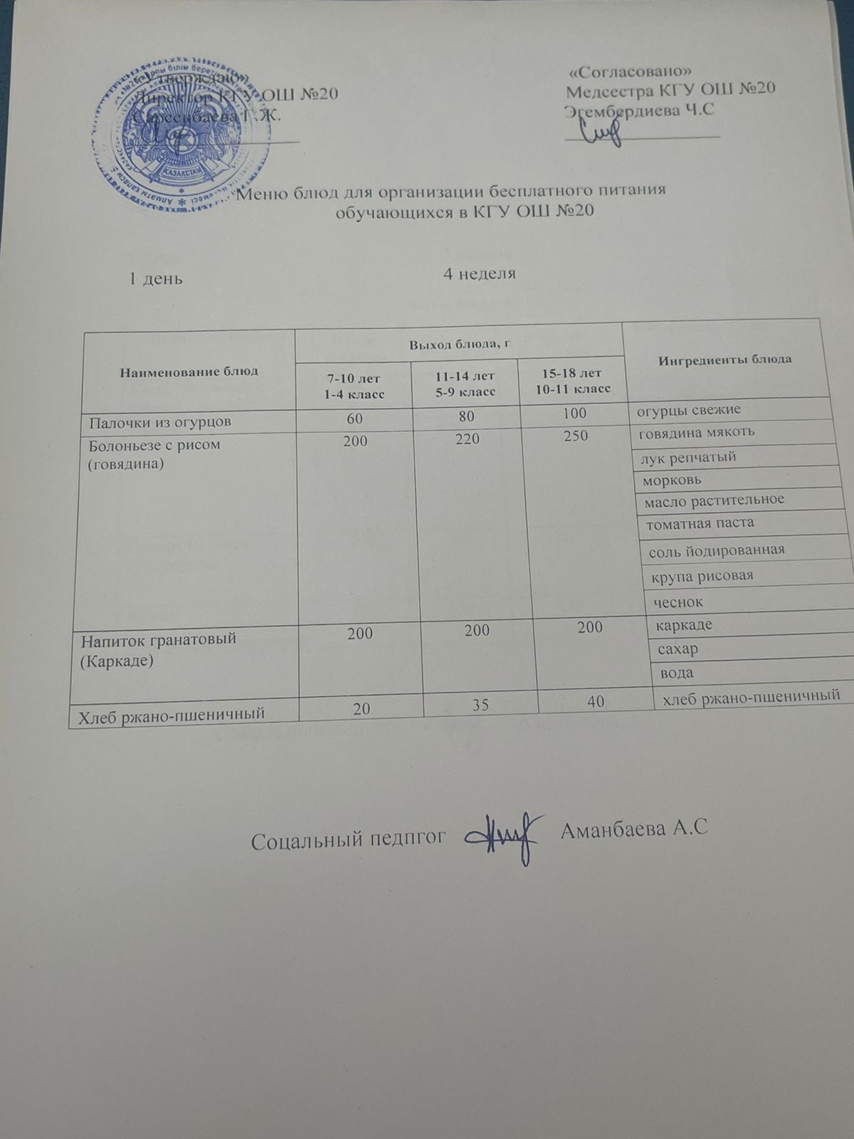 2023-2024 оқу жылы 1-4 сынып және СУСН 5-11 сыныптар мәзірі. Меню 1-4 класс, СУСН 5-11 класс 2023-2024 учебный год