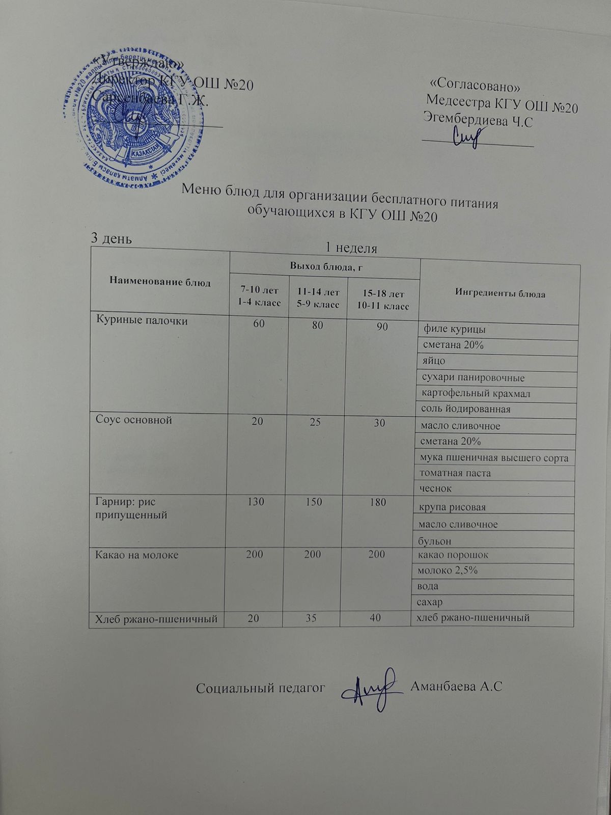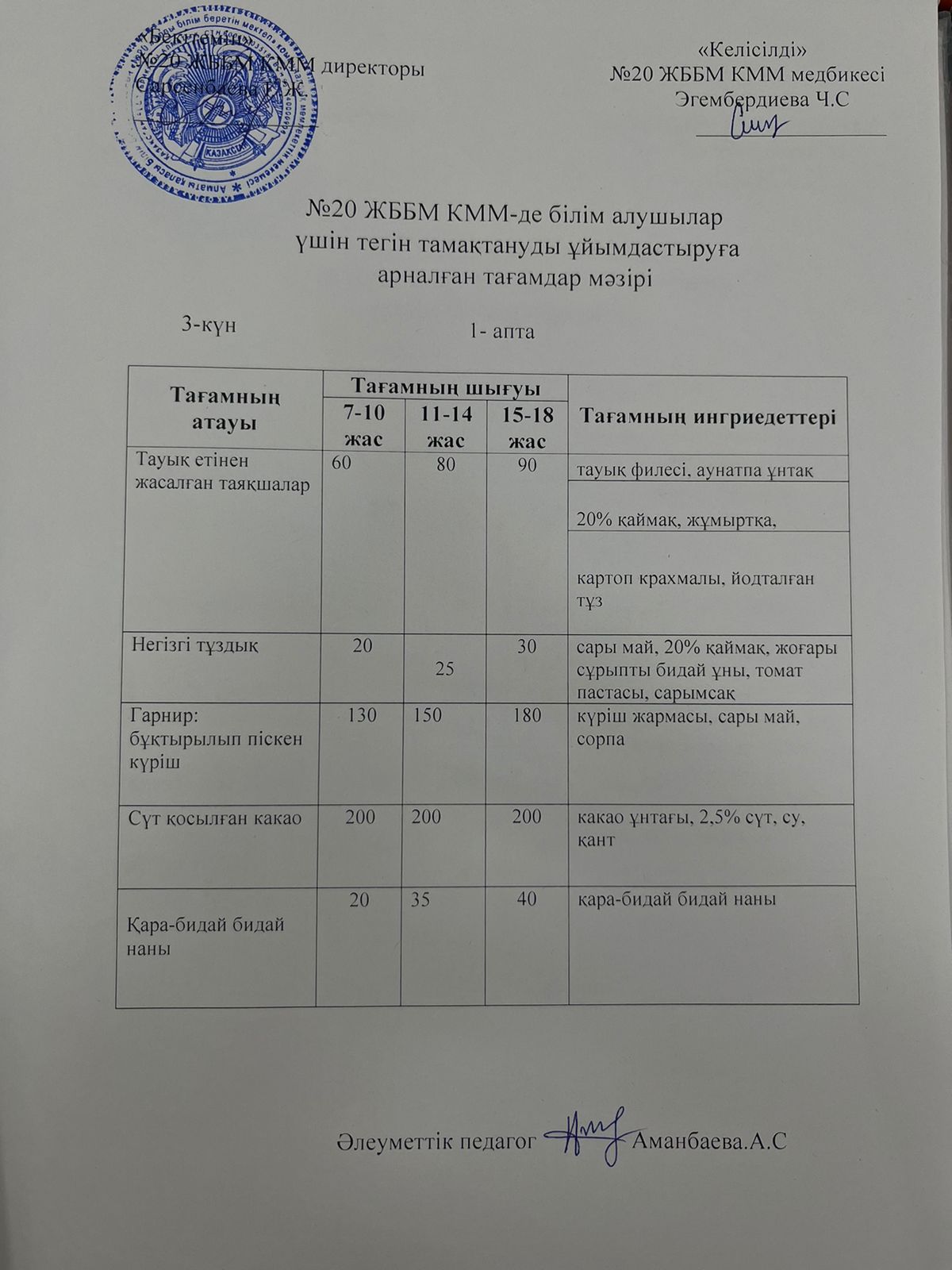 2023-2024 оқу жылы 1-4 сынып және СУСН 5-11 сыныптар мәзірі. Меню 1-4 класс, СУСН 5-11 класс 2023-2024 учебный год