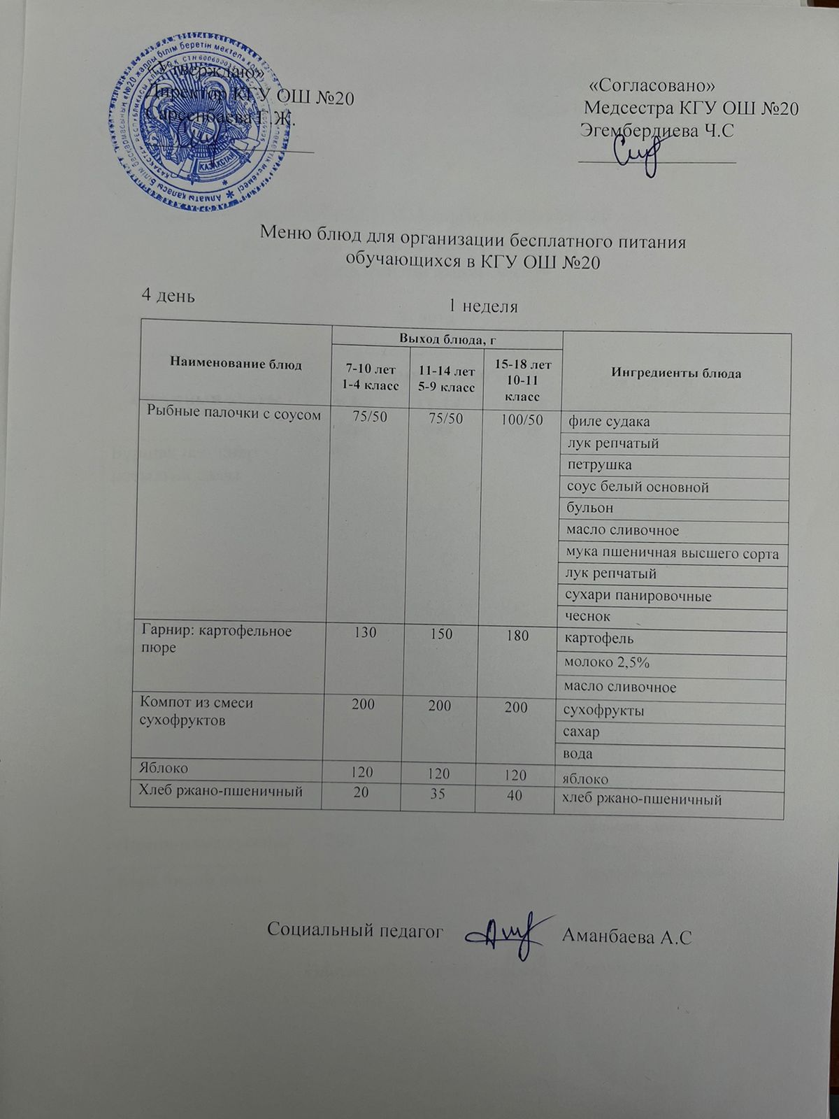 2023-2024 оқу жылы 1-4 сынып және СУСН 5-11 сыныптар мәзірі. Меню 1-4 класс, СУСН 5-11 класс 2023-2024 учебный год