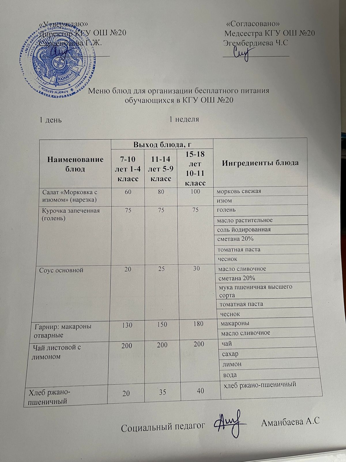 2023-2024 оқу жылы 1-4 сынып және СУСН 5-11 сыныптар мәзірі. Меню 1-4 класс, СУСН 5-11 класс 2023-2024 учебный год