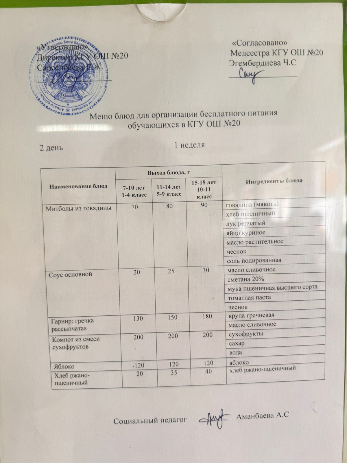 2023-2024 оқу жылы 1-4 сынып және СУСН 5-11 сыныптар мәзірі. Меню 1-4 класс, СУСН 5-11 класс 2023-2024 учебный год