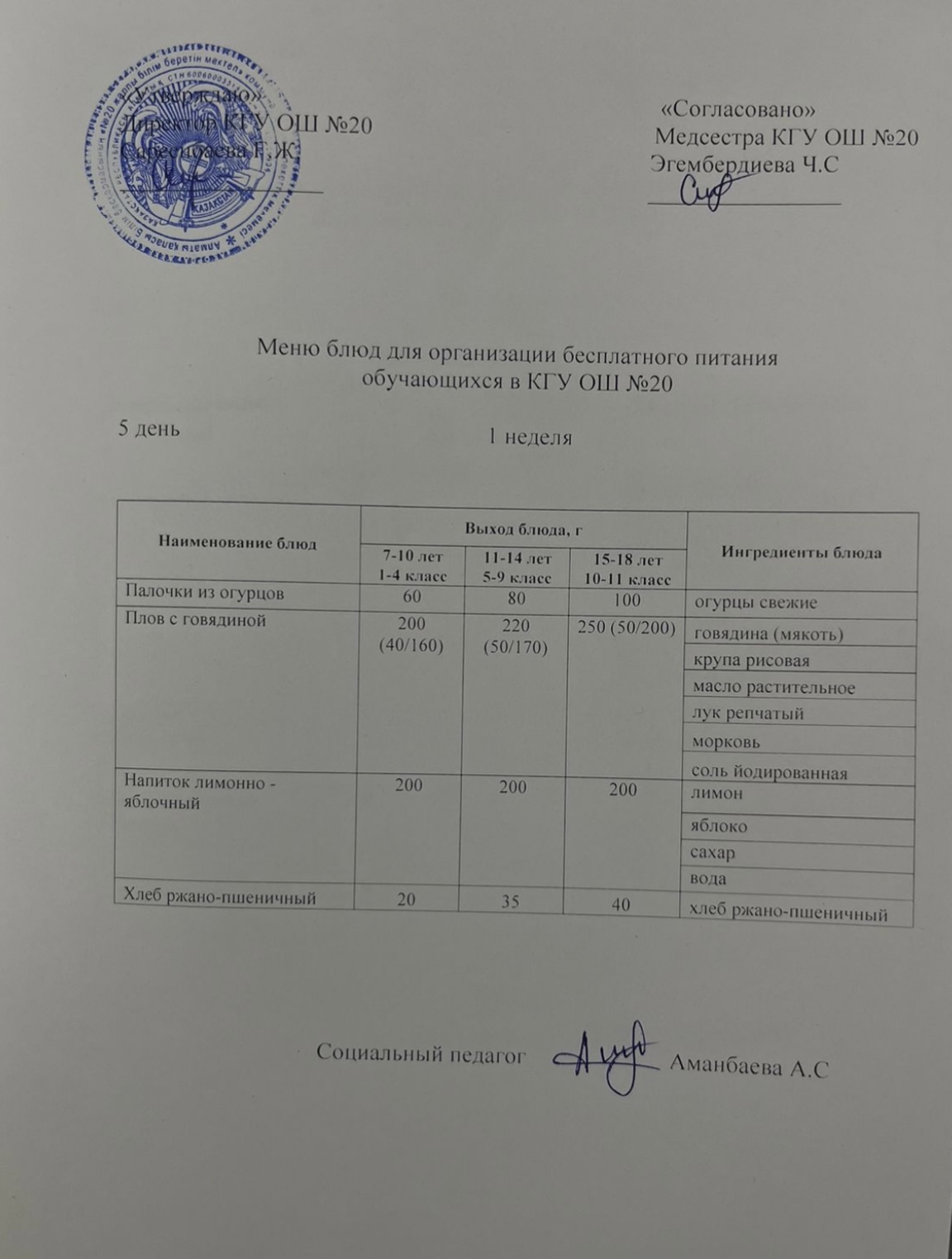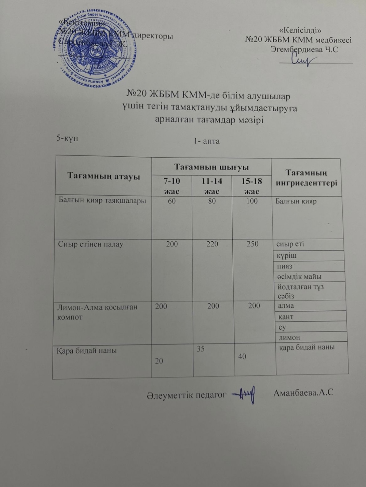 2023-2024 оқу жылы 1-4 сынып және СУСН 5-11 сыныптар мәзірі. Меню 1-4 класс, СУСН 5-11 класс 2023-2024 учебный год