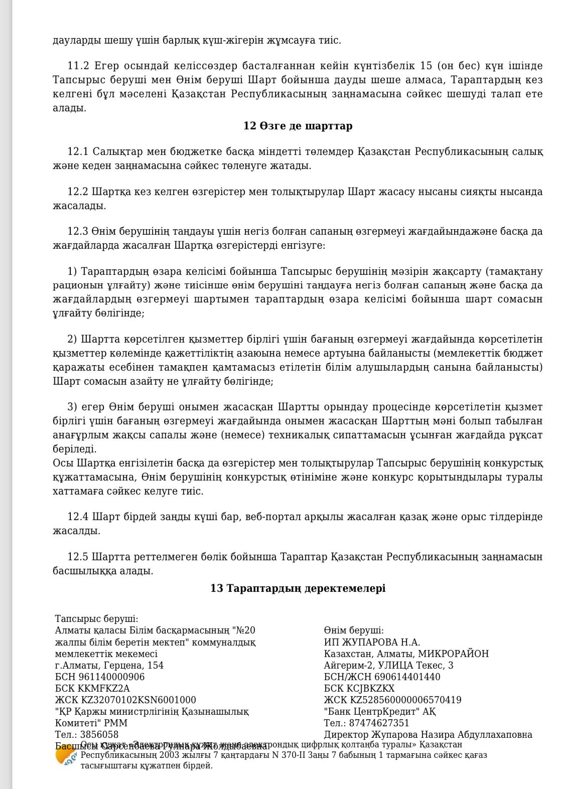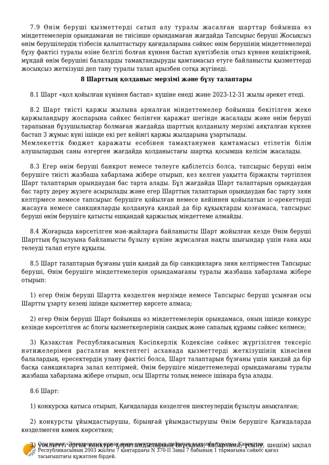 Тамақтану келісімшарты 2023 / Договор на питания 2023